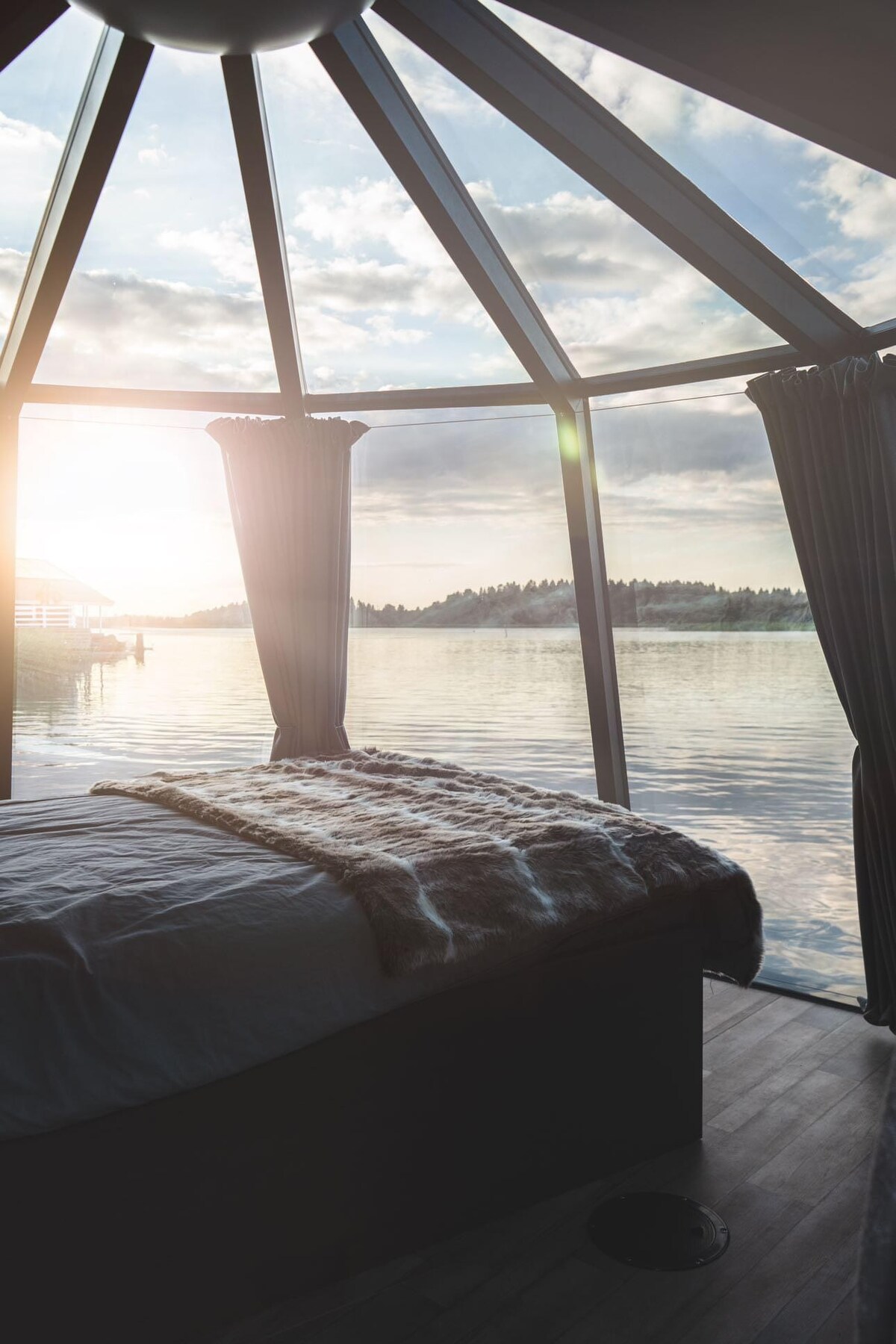 Kotej yang serba lengkap dan segar di sebidang tasik berkongsi dengan pemandangan laut. Kotej ini dibahagikan kepada ruang tamu dengan ruang dapur dan ruang tamu. Loteng tidur dengan 2 katil bujang. Di ruang tamu terdapat 1 sofa bed tidur 2 orang. Dapur dilengkapi dengan peti sejuk yang mempunyai petak pembeku, dapur memasak, ketuhar gelombang mikro, cerek dan pembuat kopi. Ruang makan untuk 4 orang. Di ruang tamu terdapat sofa, meja, kerusi berlengan, TV dan pendiangan yang selesa. Kawasan bilik mandi terdiri daripada bilik mandi besar, sauna dan tandas berasingan. Teres besar dengan kumpulan lounge dan barbeku.