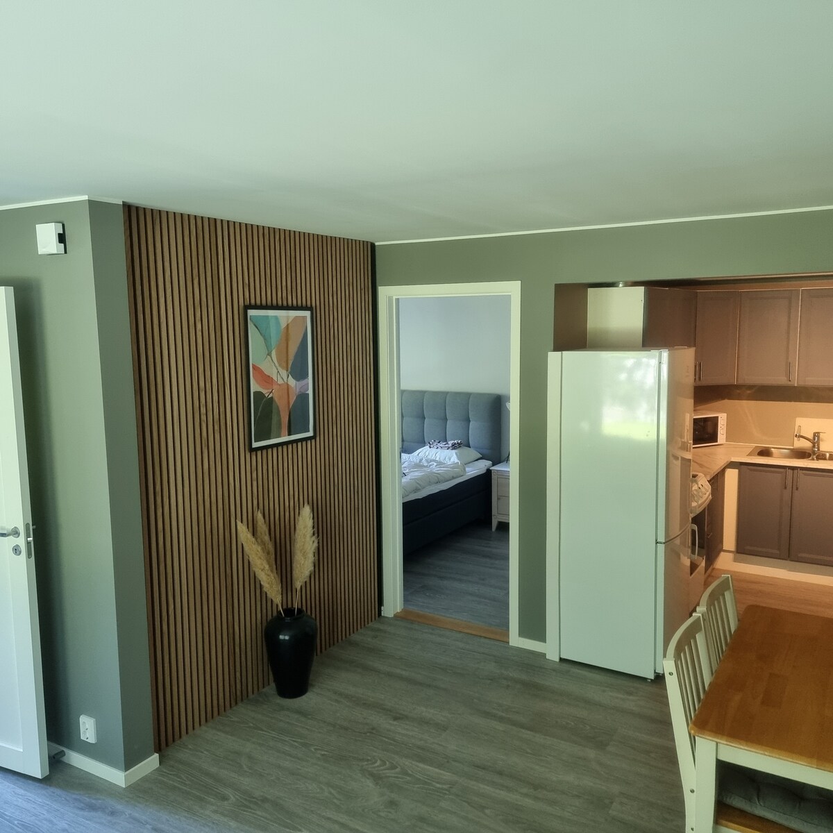 Apartmen yang baru diubahsuai di persekitaran yang tenang dengan patio yang cerah dan ruang letak kereta persendirian percuma. Cara singkat ke lapangan terbang (7 minit) dan pusat bandar Bergen (15 minit) dengan kereta. Pengangkutan awam yang baik ke kedua-dua tempat dalam masa 5 minit berjalan kaki. Apartmen ini berkeluasan kira-kira 35 m2 dan mempunyai standard yang tinggi. Lantai yang dipanaskan, dapur moden, bilik tidur yang selesa dan bilik mandi baru dengan mesin basuh/ pengering. Akses percuma kepada Wi-Fi dan TV dengan Apple TV juga tersedia di dalam apartmen ini. Jarak berjalan kaki ke kedai/restoran (7 min).