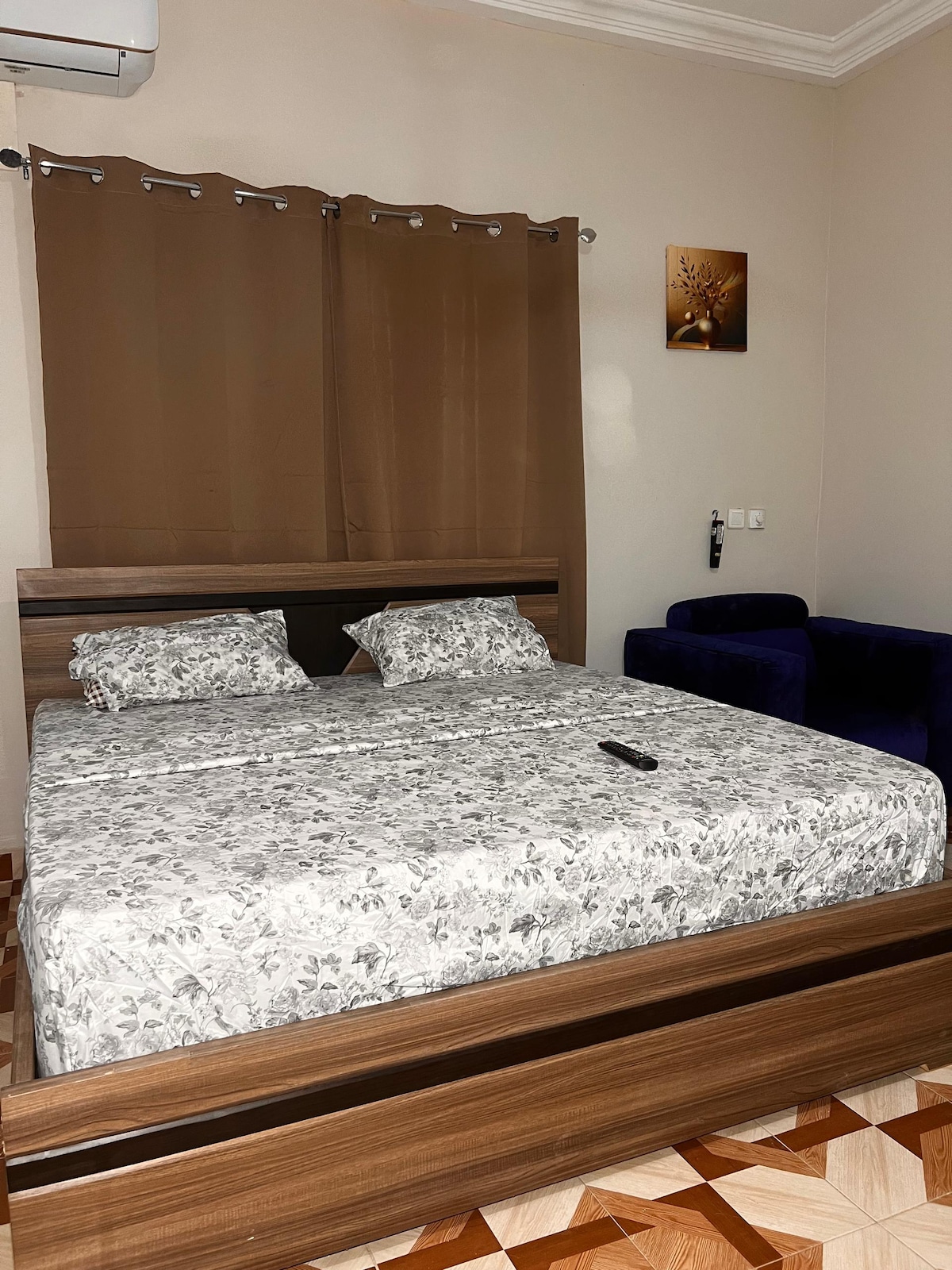 Studio moden yang menakjubkan yang direka untuk keselesaan dan gaya. Ruang yang bergaya dan selamat ini menampilkan katil saiz king, almari pakaian, dapur lengkap, SmartTV 55", internet berkelajuan tinggi, A/C, dan penjana siap sedia. Sesuai untuk pengembara solo atau pasangan. Terletak di kejiranan yang tenang hanya 25km dari Lapangan Terbang Accra. Perkhidmatan menjemput dan menghantar di lapangan terbang tersedia atas permintaan dengan bayaran. Tempat letak kenderaan yang selamat tersedia. Harap maklum bahawa terdapat aktiviti gereja ringan berdekatan pada hari Jumaat (9 pagi–11 pagi) dan Ahad (10 pagi–1 tengah hari).