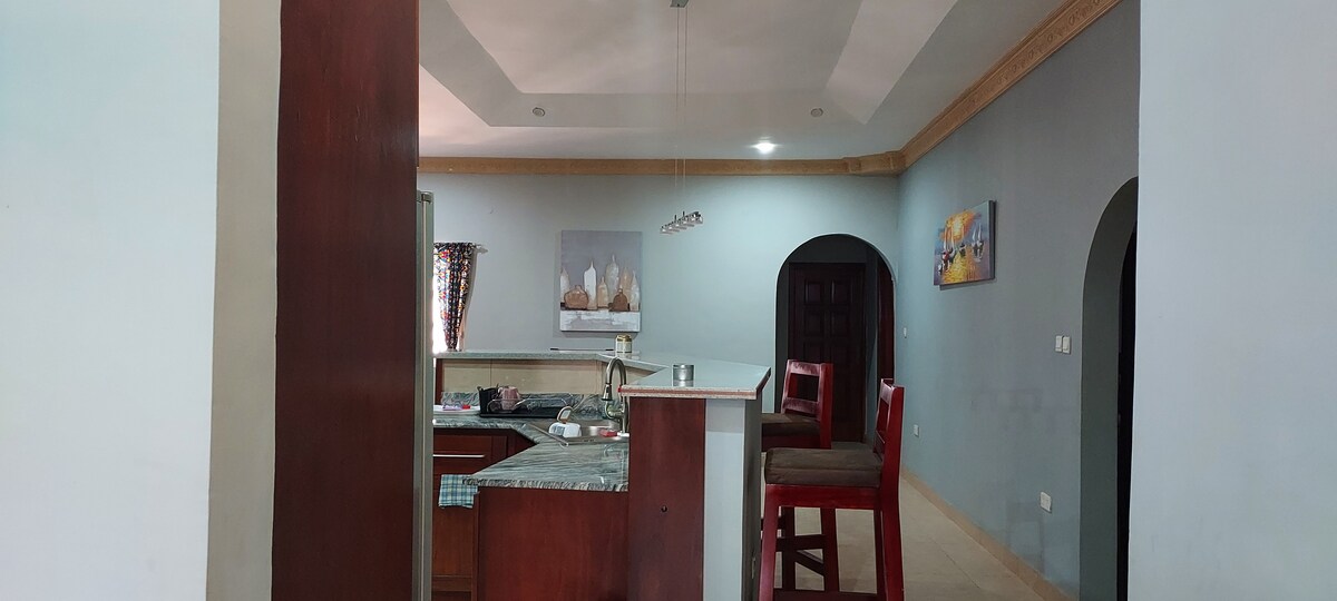 Enjoy a cozy, relaxing stay at Sanga Estates, perfect for small families and groups. Bright, spacious rooms offer a homey atmosphere with all essentials for a stress-free visit. 1. Comfortable space for parents and children 2. Full kitchen, laundry, fast WiFi, and hot water 3. Safe, quiet, secure neighborhood 4. Steps from malls, restaurants, bars, and markets 5. Easy transport via trotro, taxi, Uber, or Bolt