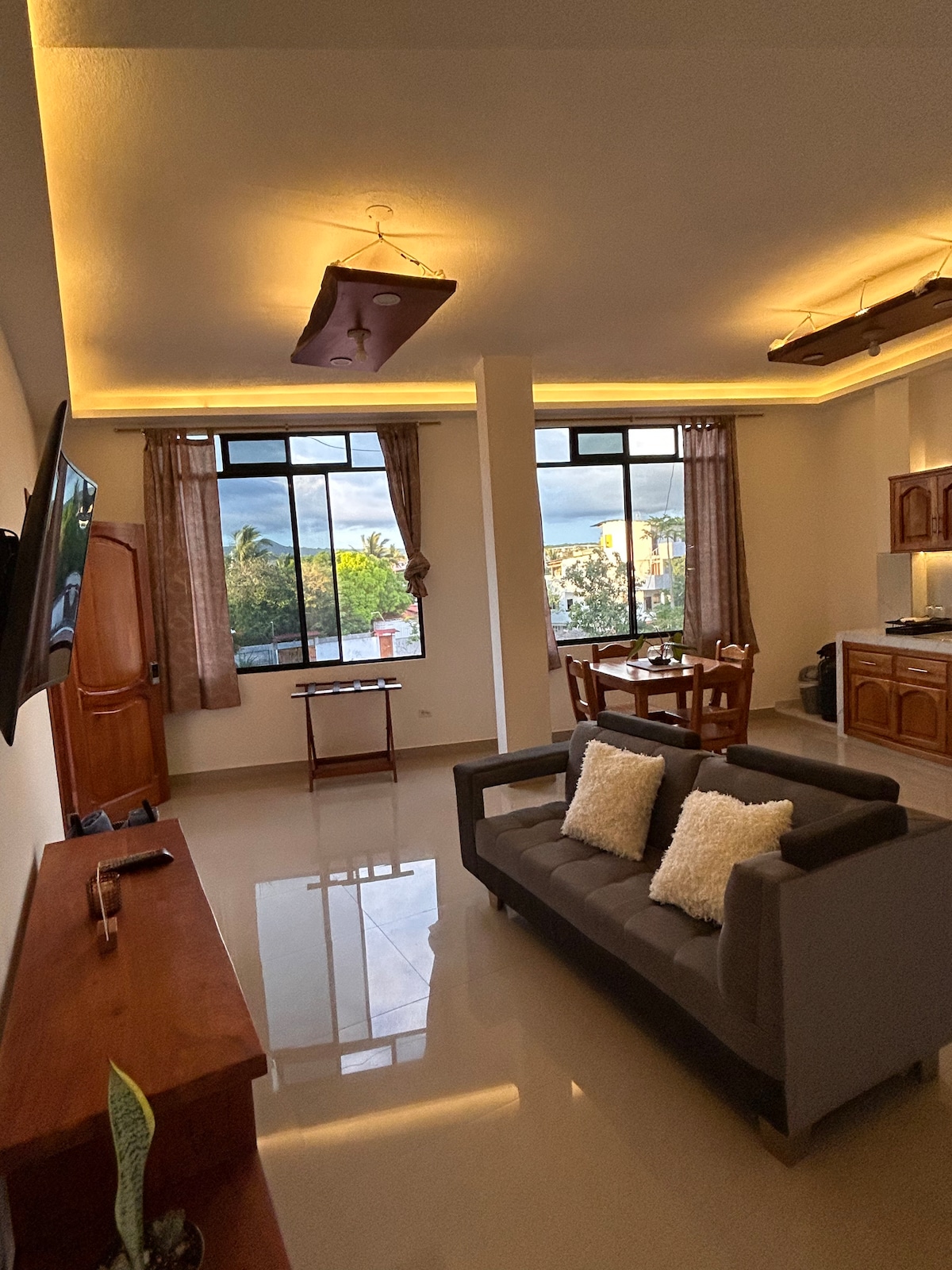 Apartmen persendirian kami yang cerah dan luas terletak di tengah-tengah Puerto Ayora berhampiran dengan Darwin Avenue. Restoran, kedai, Stesen Darwin dan jeti penumpang utama hanya beberapa minit berjalan kaki. Apartmen ini dilengkapi dengan wifi, dapur besar dengan peti sejuk, dapur induksi dan ketuhar gelombang mikro, dan kawasan umum yang luas. Ia sesuai untuk pasangan, keluarga atau kumpulan kecil. Terdapat dua bilik tidur dengan A/C dan katil sofa supaya kumpulan keluarga boleh ditempatkan dengan mudah. Patio tersedia di tingkat atas.