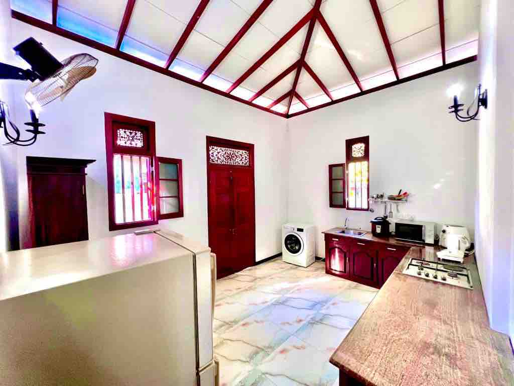 Rumah percutian seni bina Kolonial yang Cantik ini terletak di kawasan yang sangat tenang, sunyi dan kurang penduduk walaupun ia hanya 2 km dari kawasan pelancongan Hikkaduwa. Rumah yang cantik ini terdiri daripada 3 bilik tidur + 2 bilik mandi, Dapur lengkap dan banyak ruang duduk yang lapang di mana anda boleh duduk dan menikmati kopi anda. Dengan kedai runcit dan pasar raya, pengangkutan awam terletak dalam jarak berjalan kaki beberapa minit, anda akan mendapat manfaat kesunyian kampung dengan kemudahan bandar