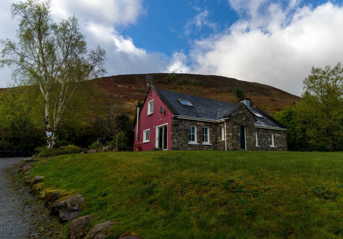 Rumah kami, ladang biri-biri yang berfungsi terletak di bawah gunung-ganang tertinggi Ireland di laluan Kerry Way yang terkenal di pusat McGillyCuddy Reeks. Bangunan-bangunan asal berasal dari 1802 dan merupakan antara yang terakhir di Ireland untuk menerima elektrik disebabkan oleh lokasi terpencil mereka di salah satu lembah Ireland yang paling tidak kotor di tepi Taman Negara Killarney. Walaupun bandar-bandar Kenmare & Killarney berjarak satu jam memandu, Kotej ini sesuai untuk mereka yang ingin benar-benar melarikan diri daripada semuanya...