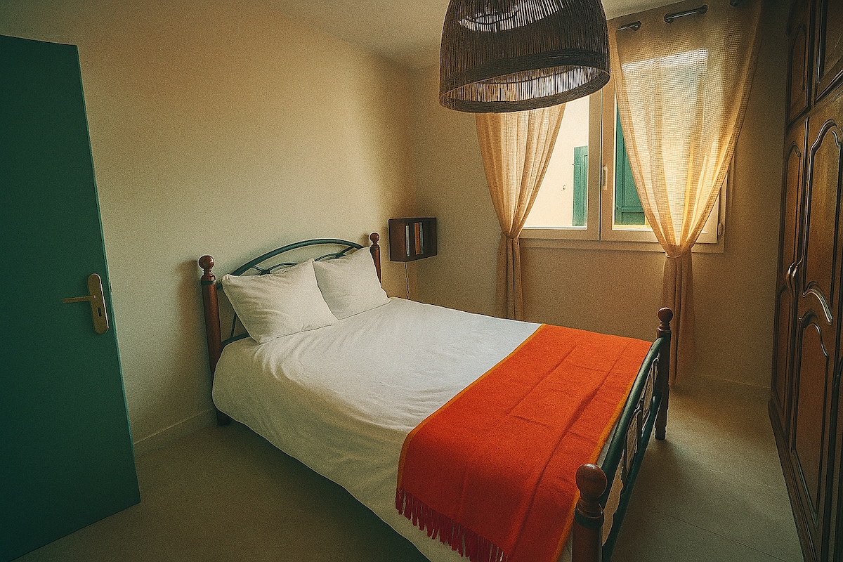 Di kawasan desa dengan pemandangan lembah yang menawan, tanda AIX EN PROVENCE adalah satu kilometer jauhnya. Mazet mempunyai empat studio 40m² yang serba lengkap masing-masing dengan pancuran mandian berjalan kaki yang luas, kawasan dapur, meja ruang makan, katil 160 yang sangat selesa dan katil single sebenar yang juga berfungsi sebagai sofa. Les Figuiers ialah bilik #1.