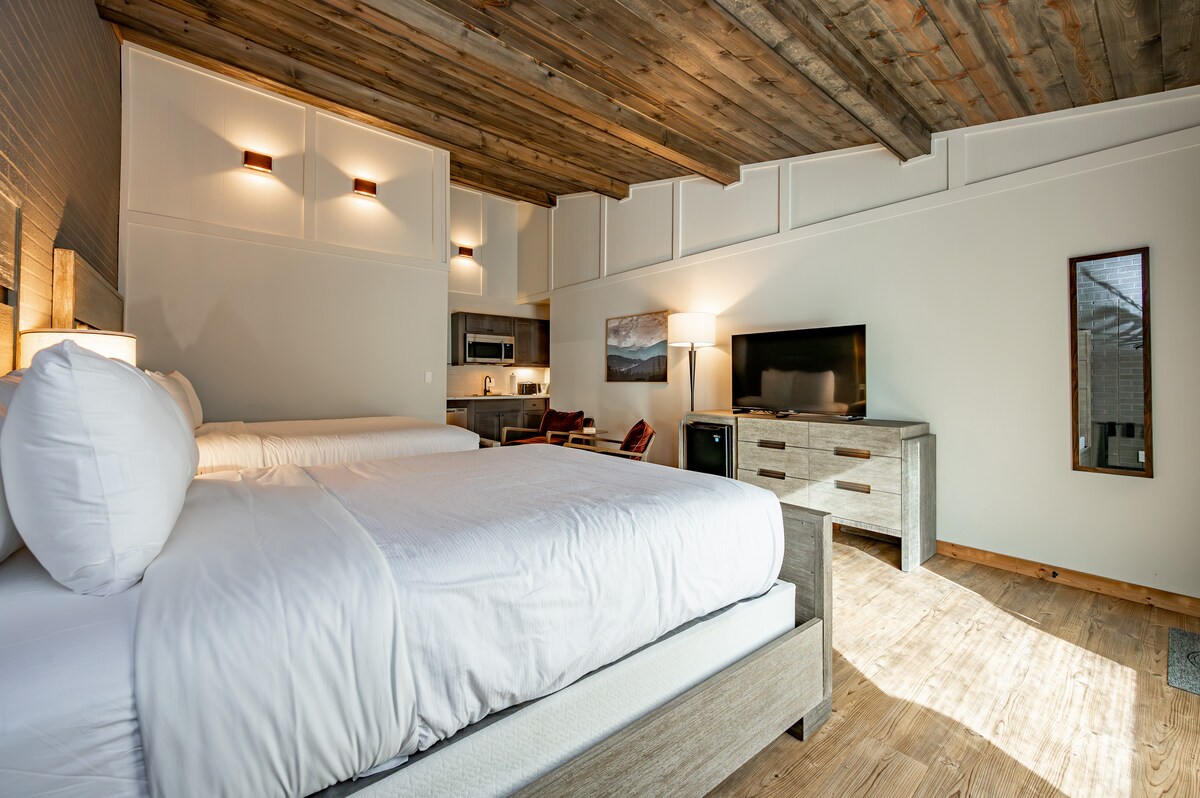 Keselesaan dan kemudahan dari setiap sudut, percutian suite tepi kolam ini memberikan anda akses kepada segala-galanya hanya dalam beberapa langkah. Bersantai di katil King yang empuk dan berehat untuk pengembaraan tasik anda yang seterusnya. Dilengkapi dengan dapur penuh untuk memasak makanan, Smart TV, dan bilik mandi mewah dengan pancuran mandi dan produk mandian berkualiti. Berjalan terus ke patio peribadi anda untuk dua orang dan nikmati udara gunung yang segar sebelum turun ke kolam renang atau mana-mana kemudahan kami. Suite ini diakses dari