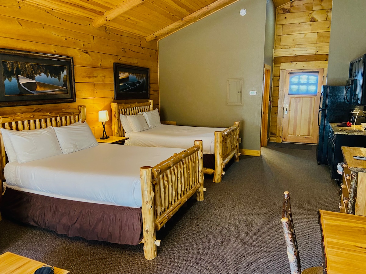 Apa yang tetamu suka tentang kedua-dua unit ini ialah mempunyai dua unit besar, 768 SF di dua tingkat dengan dapur kecil, ruang tamu ruang duduk dengan TV skrin rata sendiri di atas pendiangan yang selesa. Perhatian, anda mungkin mendengar jiran-jiran anda di sebelah apabila berada dalam kabin dupleks. Loteng di kabin ini mempunyai katil queen dan bilik mandi penuh.