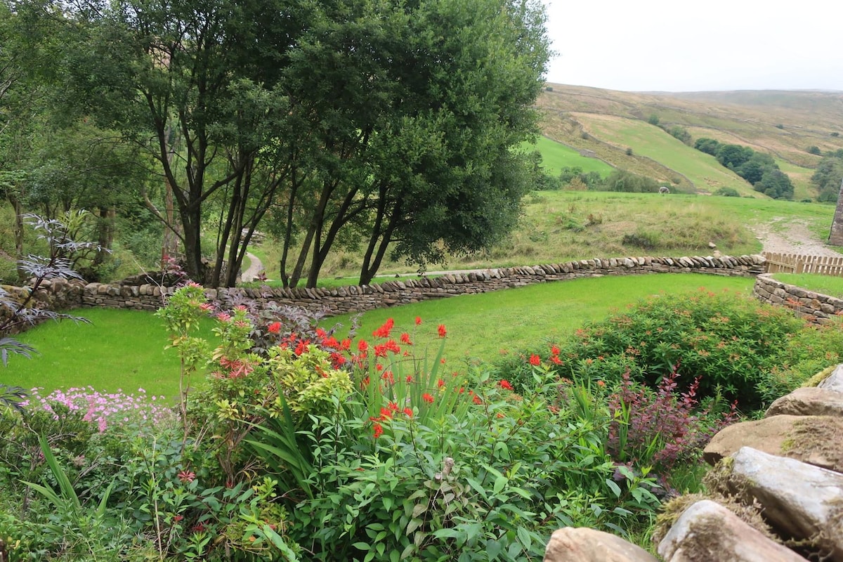 Bangsal tradisional, yang terletak di lereng Whernside, di Taman Negara Yorkshire Dales, ini benar-benar tempat yang terpencil. Terletak di hujung trek sempit, ia diselubungi oleh hutan, padang dan sungai. Pelan terbuka, gaya desa sesuai dengan pasangan, kumpulan kecil dan beberapa keluarga, dan sesuai sebagai pangkalan untuk aktiviti luar. Percutian luar bandar mesra anjing yang damai dengan berjalan-jalan di depan pintu anda, penggunaan eksklusif taman, BBQ arang, ketuhar pizza, dan tab mandi air panas yang dibakar kayu untuk berehat.