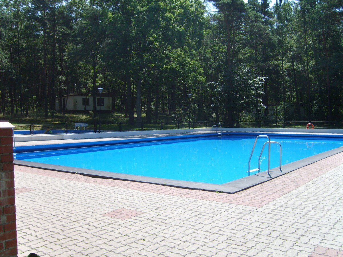 Peluang unik untuk berehat. Kotej (60m), 1j dari Warsaw, berada di atas petak berpagar besar di hutan pain yang indah. 2 bilik tidur dan ruang tamu (dengan katil sofa) dengan dapur. Untuk keluarga atau untuk perjumpaan semula rakan-rakan. Foosball, badminton, swing, toboggan, buaian rajut, barbeku, lubang api, bot, trampolin. Berdekatan, terdapat kolam renang, kedai, restoran. Pada hari cuti perlahan dan HO. Haiwan peliharaan ok. WiFi ya, netflix, hbo, apple tv, prime