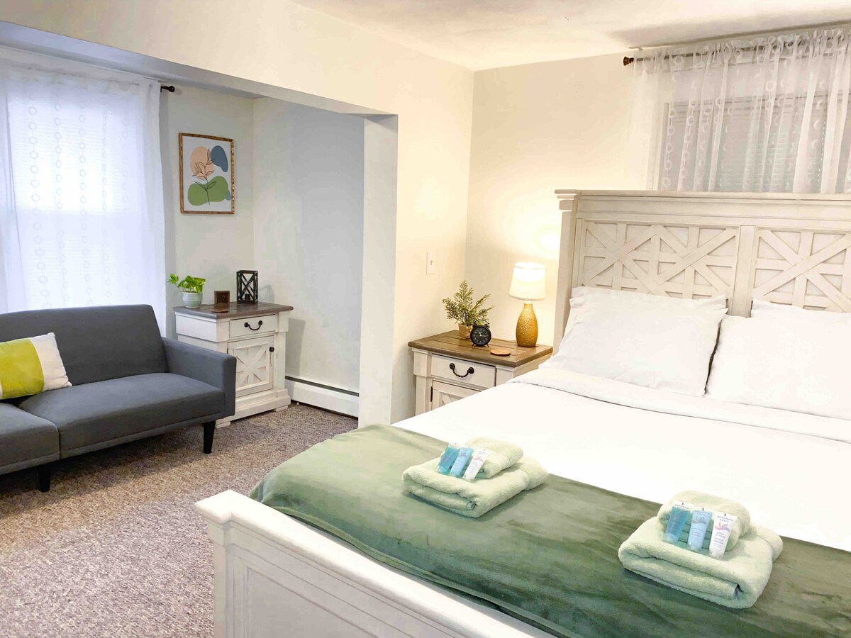 Studio 300 kaki persegi yang tenang dan cerah, kejiranan yang hebat, dalam Daftar Bersejarah Kebangsaan! Berdekatan dengan Miriam, Brown & RISD. Anda mempunyai seluruh tingkat dua untuk diri anda sendiri, dengan tempat letak kereta di laluan masuk, pintu masuk & bilik mandi persendirian, lounge, kaunter kerja/makan, WiFi berkelajuan tinggi & Roku Smart TV. Terdapat peti sejuk kecil, ketuhar gelombang mikro, dispenser air panas/sejuk Brio, Keurig. Kopi, teh, susu, mufin buatan sendiri, bar granola:). Sila ambil perhatian: TETAMU MESTI BERADA DI PENYENARAIAN. PELAWAT MESTI DILULUSKAN SEBELUM MENGINAP.