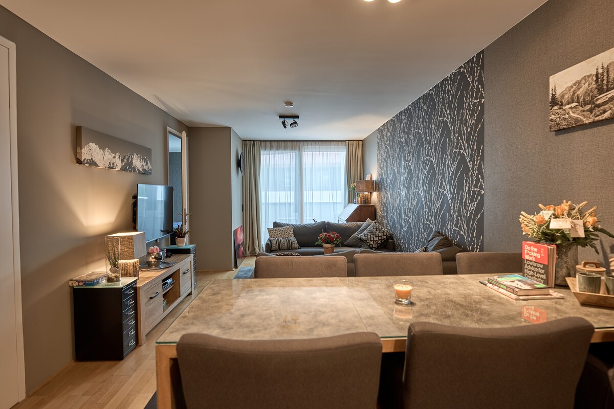 Apartmen yang selesa dan dibanjiri cahaya ini terletak di tingkat satu chalet Tyrolean dan baru diubahsuai pada penghujung 2019 dan dilengkapi dengan banyak kasih sayang. Ia menawarkan 2 bilik tidur dengan 6 kemungkinan tidur (maksimum 5 orang dewasa), ruang tamu yang luas dengan dapur dan ruang makan, pancuran mandi & tandas berasingan, balkoni selatan/barat yang menghadap puncak Maharaja Liar, tempat letak kereta bawah tanah, storan ski. Di sini anda boleh berehat dan menikmati keselesaan dan suasana alpine.