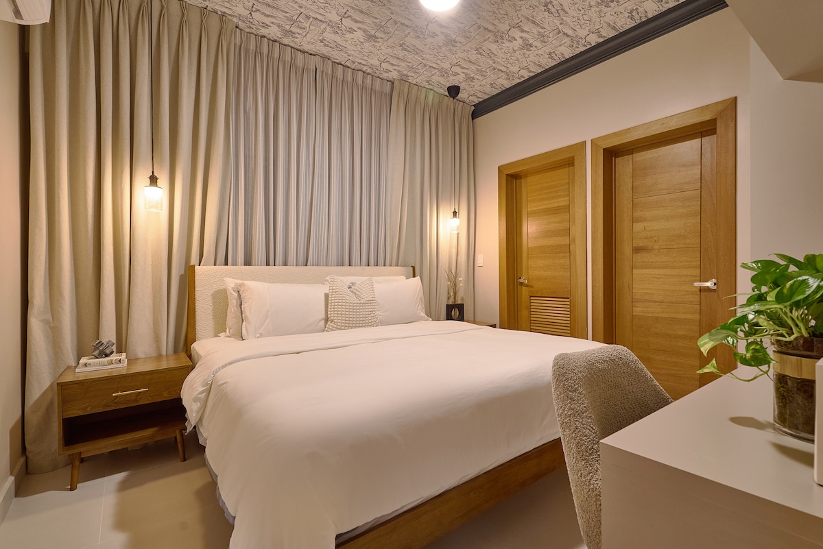 Bienvenido a tu nuevo hogar en Santo Domingo; este espacio ha sido diseñado para proporcionarte una experiencia única. WIFI RÁPIDO SALA -Sofá grande -Aire acondicionado -Smart TV -TERRACE/BALCONY Impresionantes vistas de la ciudad DINING / COCINA -Asientos para dos -Refrigerador/Estufa -Utensilios HABITACIÓN -Cama king. -Smart Tv -Aire acondicionado -Baño -Piscina y barbacoa -Lobby -GYM -Dos ascensores -1 parqueo -Smart Lock ¿Qué estás esperando? Reserva tu estadía el día de hoy!