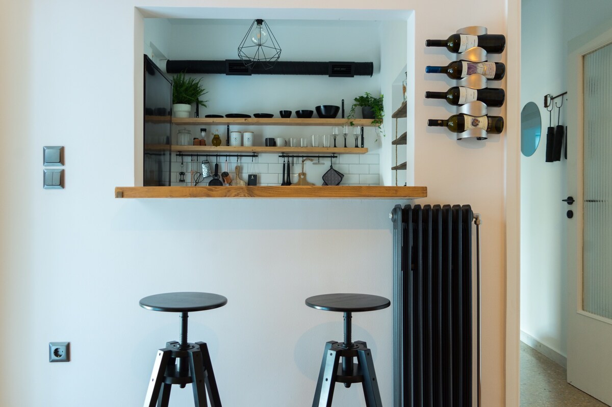 Apartmen mewah yang diubahsuai di tengah-tengah Athens di kawasan ini dengan kehidupan malam terbaik di bandar ini. Internet 100 Mbit, dapur serba lengkap, katil busa memori dengan teduhan automatik untuk pintu balkoni. Skrin rata 50 inci, penghala persendirian, mesin basuh, peralatan dan perabot baharu.