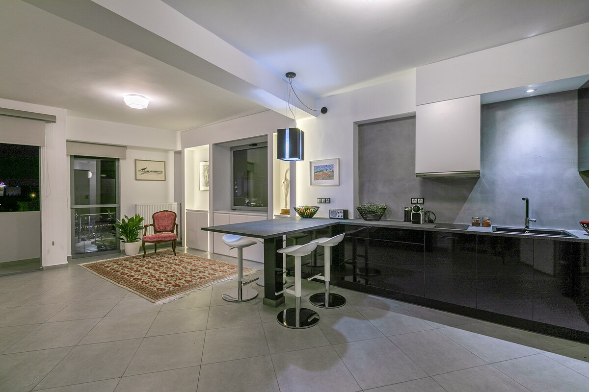 Di Iris Penthouse anda akan menginap di bangunan baharu di tengah-tengah Athens. Memasuki Penthouse disambut dengan pemandangan Acropolis yang menakjubkan, balkoni XL dan kemudahan premium. Selepas meneroka Athens, segarkan diri dalam Jacuzzi berbuih kami sementara pendiangan berkelip-kelip dan penceramah Marshall memainkan lagu kegemaran anda. Hanya 1 minit berjalan kaki ke metro, 13 minit ke pintu Acropolis, dan dikelilingi oleh restoran, kafe dan hiburan malam yang luar biasa. Alami Yang Terbaik di Athens!