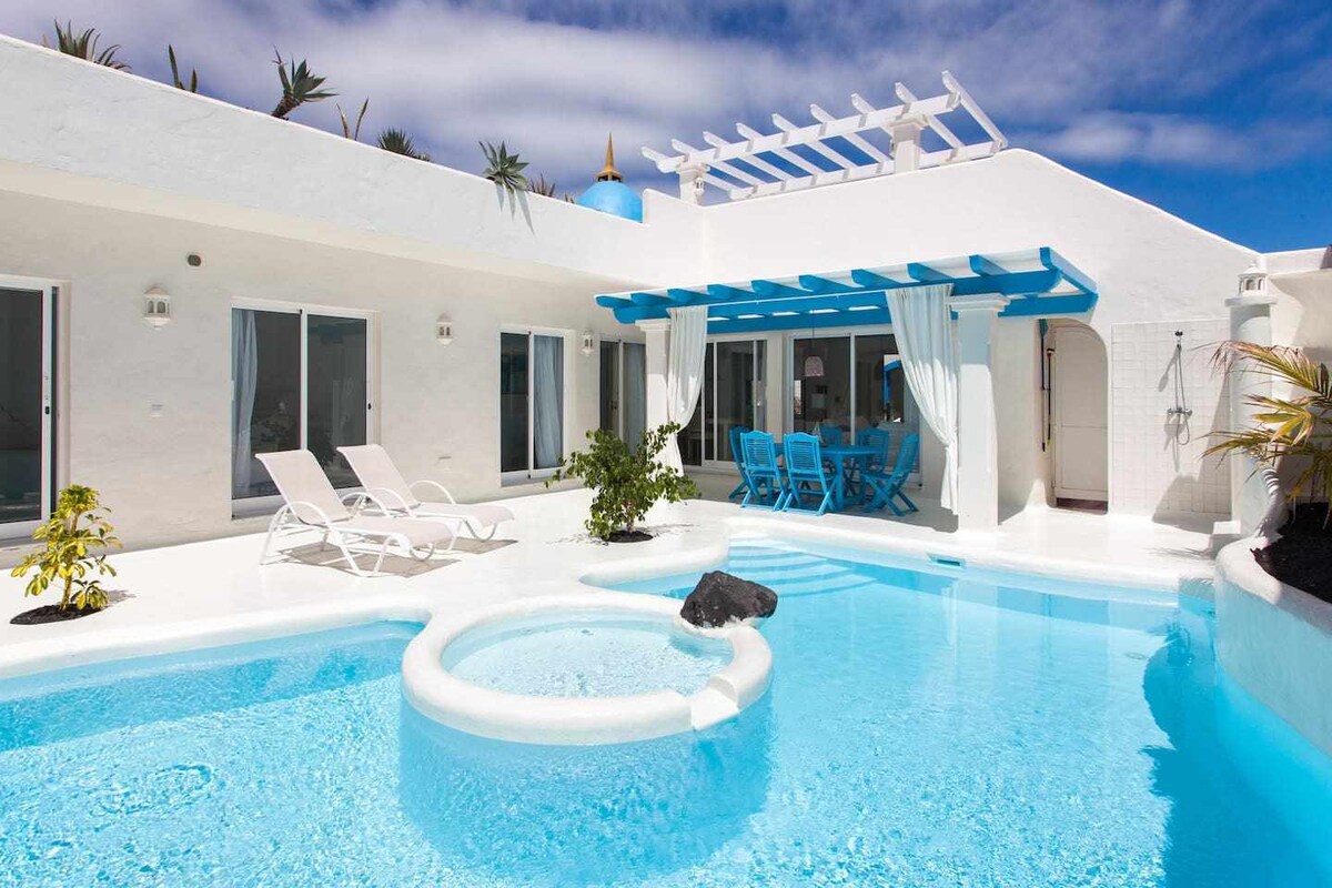 Vila 3.4 - Vila yang mengagumkan di kompleks persendirian Bahiazul Mewah. 3 bilik dengan bilik mandi persendirian, ruang tamu, dapur lengkap dan ruang makan dengan tandas. Teres dengan kolam renang persendirian (mungkin kolam renang dipanaskan € 22/hari) dan kawasan bersantai, Azoeta dengan barbeku, Jacuzzi dan kerusi berjemur. TV satelit, wifi dan penyaman udara. Di kompleks mewah eksklusif Bahiazul. Sangat dekat dengan Dunes of Corralejo yang lebih indah sesuai untuk menghabiskan percutian yang sempurna untuk 6 orang.