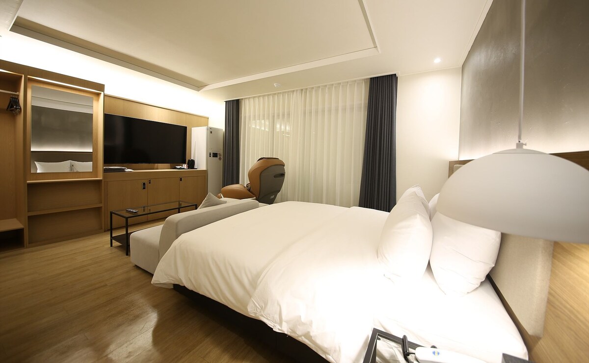 Menginap di Jinhae Yongwon Runner Hotel, sebuah hotel mewah dan selesa yang terletak di tengah-tengah daerah komersial terbaik dengan makanan dan hiburan yang serba lengkap di Yongwon.