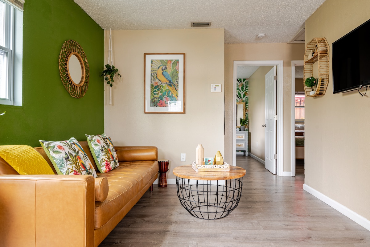 Menginap dekat dengan segala-galanya di rumah 2BR Tampa yang dikemas kini ini! Hanya 2 minit dari stadium, 7 minit ke lapangan terbang, dan memandu sebentar ke Ybor, pusat bandar, Busch Gardens dan pantai. Nikmati dapur yang lengkap, ruang tamu dengan katil sofa dan permainan, Wi-Fi pantas dengan ruang kerja dan halaman belakang persendirian yang dipagari sepenuhnya dengan patio, tempat duduk dan ping pong. Sesuai untuk keluarga, profesional atau percutian yang menyeronokkan.