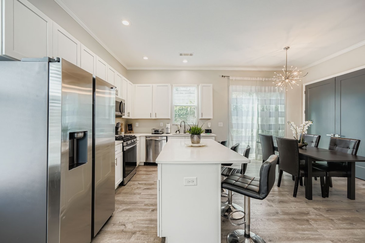 Rumah 4b/2b yang cantik dilengkapi dengan dapur penuh (termasuk bekalan kopi dan memasak), syampu mandi,perapi, sabun badan), halaman dan patio berpagar yang luas, 2 meja & kerusi pejabat, & katil yang selesa. Rumah bersih ini terletak dalam jarak 1 batu berjalan kaki ke Truist Park dengan banyak kedai, restoran, & hiburan. Terdapat juga pasar tani yang berjarak 2 minit berjalan kaki. Pusat bandar ATL hanya 15 minit memandu! Nikmati WIFI & Roku TV percuma yang pantas di dalam setiap bilik! ID Lesen STR-30, ID Perniagaan HBL-720