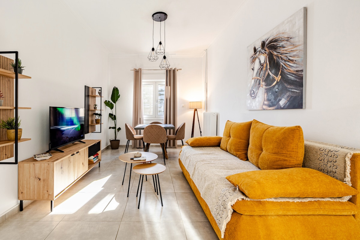 Dengan penuh semangat dan hormat kepada tetamu kami, kami mencipta ruang penginapan yang menyenangkan dengan semua kemudahan yang diperlukan. Apartmen ini dilengkapi dengan katil bersaiz queen - tilam spring poket - dapur lengkap, dan TV pintar satelit. Ia terletak 100m. dari pantai Kalamaki yang dianugerahkan dengan bendera biru. Jaraknya hanya 5 km dari pusat bandar Chania. Berhampiran apartmen, tetamu kami boleh mencari perhentian bas, pasar mini, farmasi, restoran pizza, kafe dan restoran.