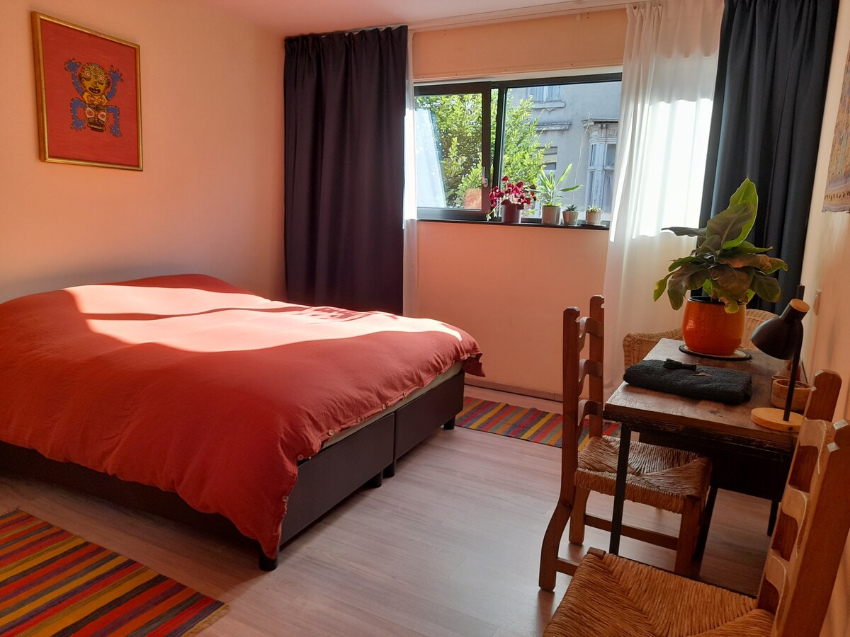 Apartmen kami seluas 93 m² terletak di pusat Antwerp di kediaman kecil dan tenang, mempunyai 2 teres, 2 bilik tidur dengan katil berkualiti, dapur terbuka (serba lengkap), bilik mandi yang selesa dan tandas berasingan. Bahagian dalamannya adalah gabungan perabot keluarga lama dan elemen reka bentuk terkini. TV Pintar dan sambungan WiFi yang baik sudah tentu tersedia. Terdapat juga mesin basuh dan kabinet pengeringan untuk keselesaan anda. Kami sukakan pendekatan peribadi. Mudah-mudahan begitu juga anda!