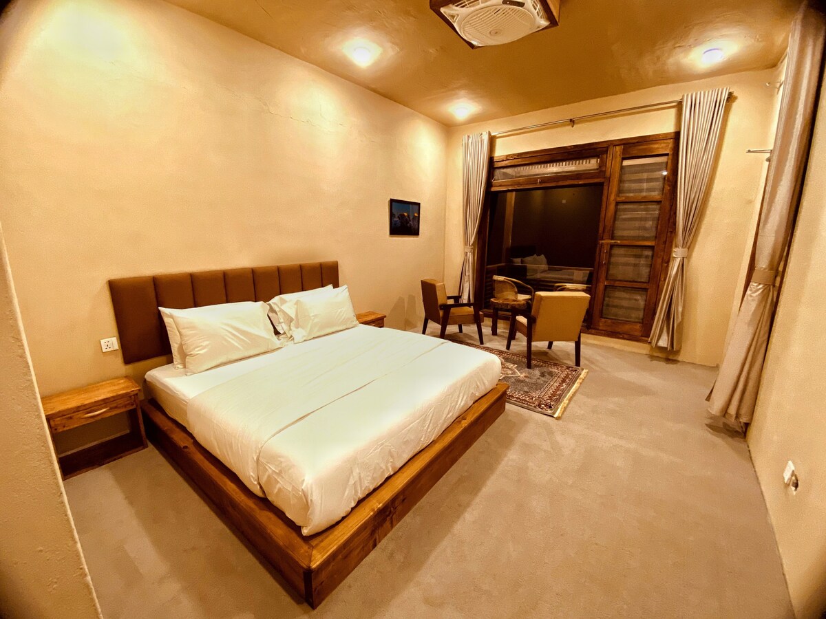 Resort tepi sungai yang tenang dan dibina secara tradisional terletak di tengah-tengah Gulmit, Upper Hunza. Diwan e Hunza menggabungkan seni bina Wakhi dengan keselesaan moden—menawarkan bilik yang luas, balkoni persendirian dengan pemandangan gunung dan sungai, dan suasana taman yang tenang. Tetamu menikmati masakan tempatan, layanan baik dan akses mudah ke tempat ikonik seperti Passu Cones, Tasik Borith dan Jambatan Hussaini. Sesuai untuk keluarga, pencinta budaya dan pengembara yang mencari ketenangan di pergunungan.