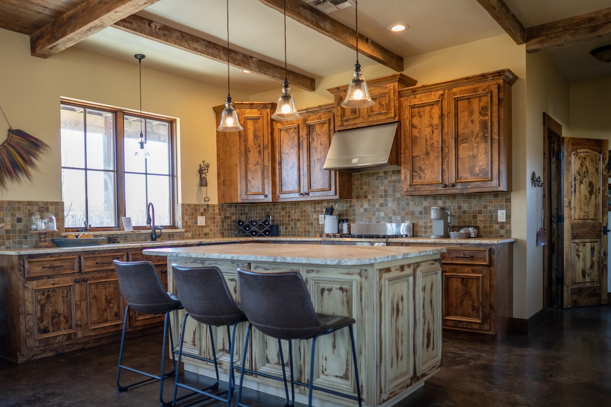 Spotted Sheep Farms is located on 8 private acres and features two separate properties. The Villa at Spotted Sheep Farms, an Italian style 1,800 square foot home with beautiful finishes and a luxurious huge master suite. The property is home to animals and wild life including alpacas, miniature donkeys, and of course, spotted sheep! It’s perfect for a getaway, relaxing, enjoying some of Texas' best wineries, Fredericksburg shopping and the quiet evening in the hot tub.