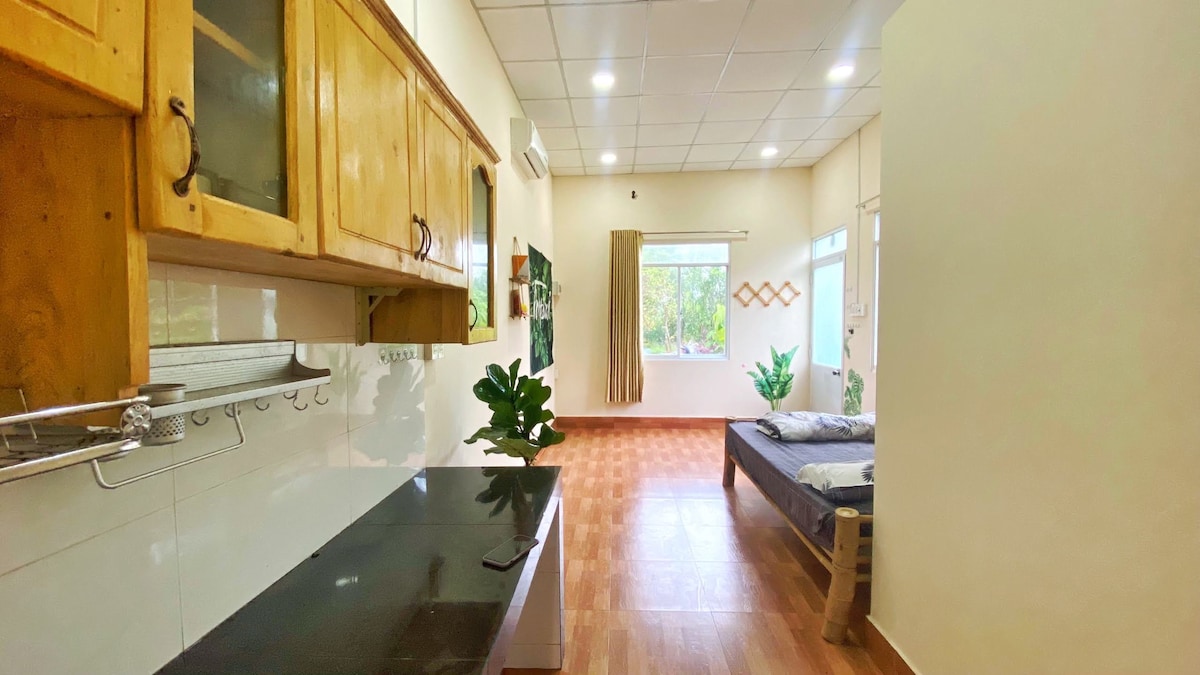 Inap desa yang luas, selesa dan berhubung dengan alam semula jadi. Ruang untuk berehat atau melakukan apa-apa yang menyihatkan minda dan badan anda. Apartmen ini terletak di tingkat 2, dilengkapi dengan ruang tamu yang besar, bilik tidur, bilik zen (boleh menjadi bilik tidur ke-2 jika anda menempah untuk 3-4 tetamu), dapur, bilik mandi yang luas dengan tab mandi dalaman dan pancuran mandi luar, balkoni besar dengan pemandangan sungai PERHATIAN: - Jika menempah 1-2 tetamu: 1 katil - Jika menempah 3-4 tetamu: 2 katil - Jika menempah 1-2 tetamu tetapi memerlukan 2 katil: harga tambahan ialah 250.000vnd/ malam