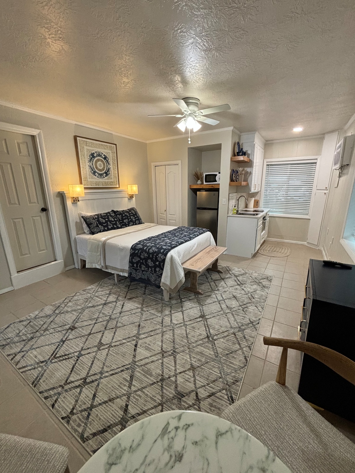 * Casita bersambung dengan rumah baru -- Tiada tangga * Patio persendirian * Katil King size untuk 2 orang dewasa, lampu sisi katil dengan pilihan pengecasan & outlet, cermin panjang penuh & meja solek besar * Sofa, tilam busa memori tiga kali ganda, pac-n-play, & tilam udara tersedia, untuk sehingga 2 orang dewasa lagi di ruang tamu * Wi-Fi 100 MBS, TV Pintar * Keurig dengan pod: DECAF, biasa, teh, koko * Peti sejuk/pembeku kecil, ketuhar gelombang mikro, cerek teh elektrik * Tongkat pancuran mandi Deluxe, alat pengering * Almari berganda, seterika & papan seterika