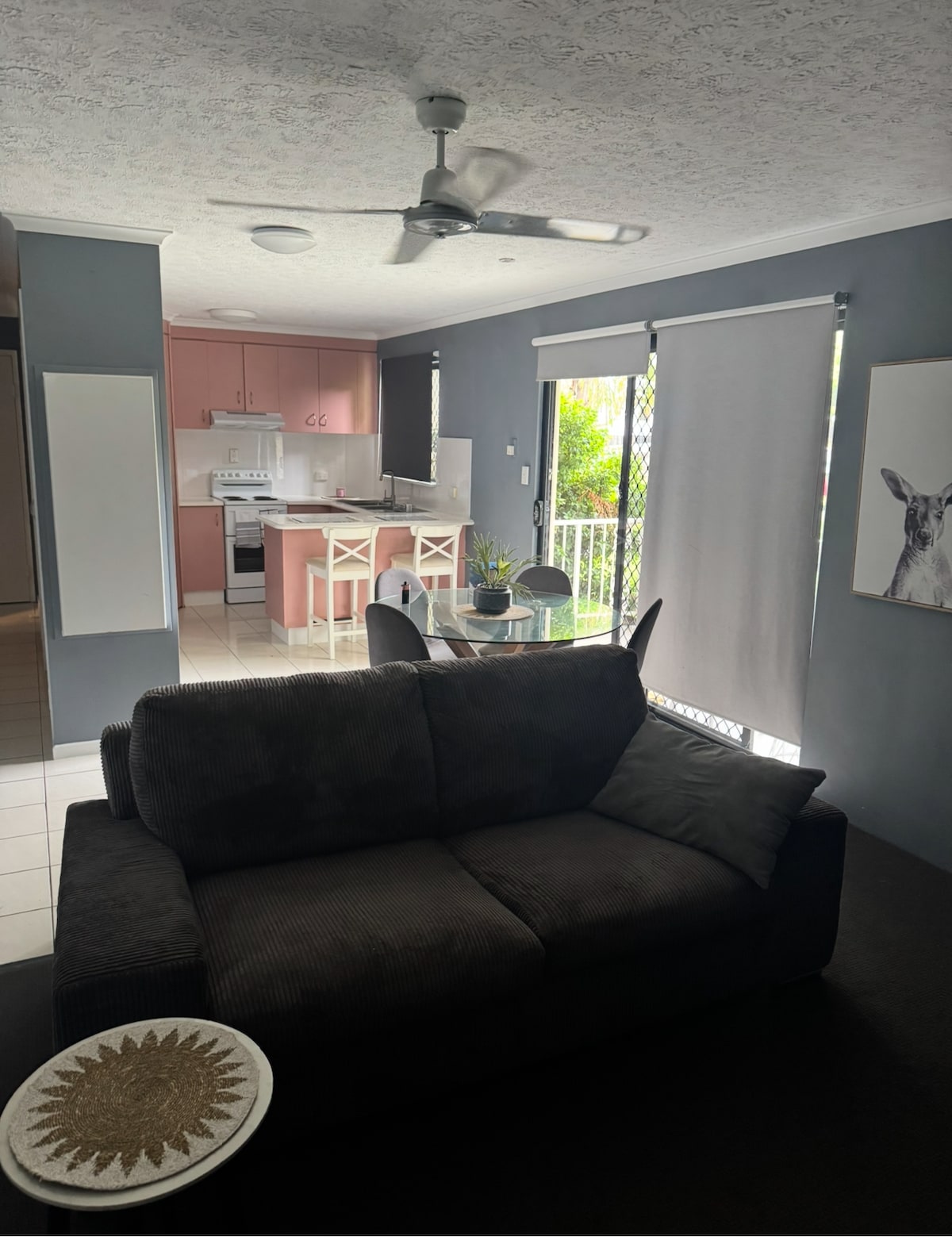 Airbnb paling tengah di Tannum Sands. Berjalan kaki ke restoran, kafe, pub, kedai, pantai & banyak lagi dalam masa 1-10 minit. Hanya 650m dari Tannum Sands Beach, apartmen berinspirasikan Sepanyol tingkat dua anda menjemput anda untuk berehat dalam angin laut di beranda luas anda dan menikmati kemudahan seperti BBQ, mesin kopi, dapur penuh, peralatan tempat tidur yang selesa, projektor, permainan, gimnasium, dobi, kayak & papan dayung. * Maksimum 6 dewasa, 2 kanak-kanak * Tanya tentang tingkat bawah 1 unit bilik tidur. (gabungan 4 katil, 2 ruang mandi)