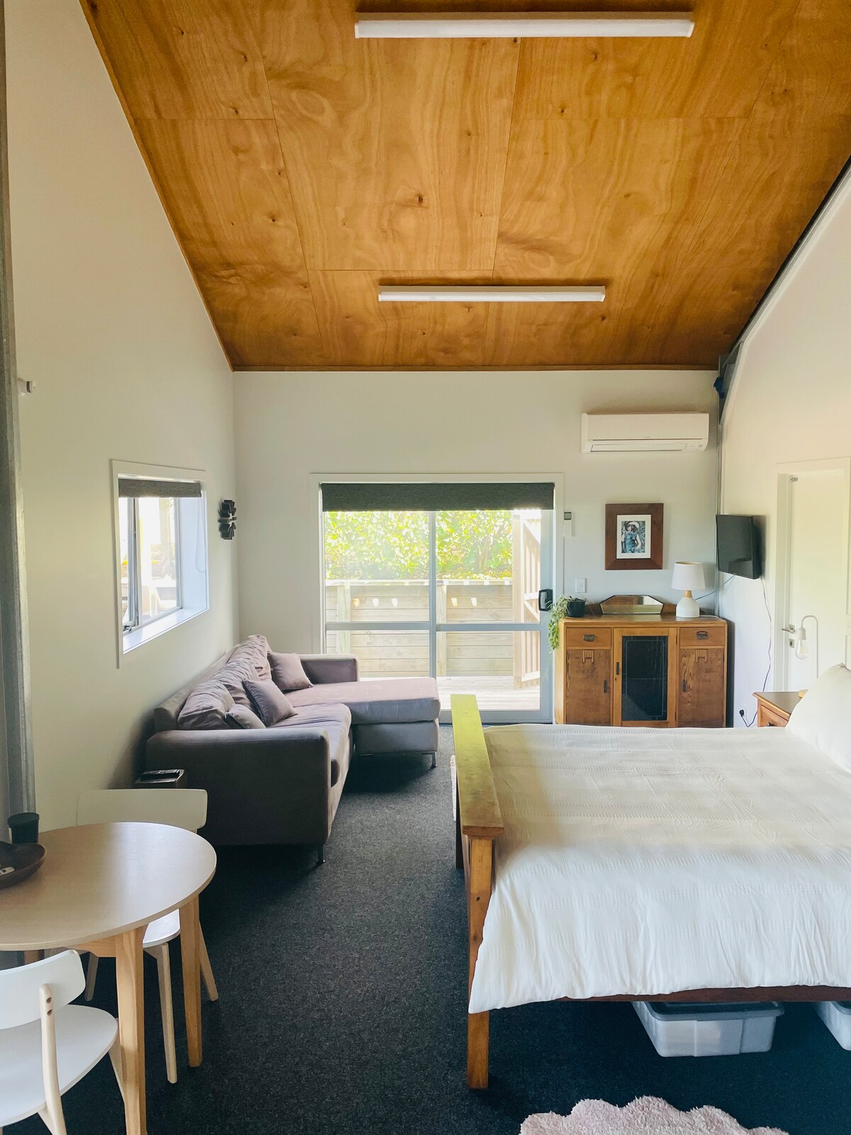 Bersantai dan bersantai di apartmen studio yang indah ini. Nikmati pemandangan Moonlight Bay, dan persekitaran tenang belukar asli dan lagu burung. Ambil laluan persendirian ke teluk untuk berenang, atau lihat dari perspektif yang berbeza menggunakan kayak yang disediakan untuk tetamu. Perbandaran Raglan yang meriah adalah perjalanan kereta lima minit yang singkat (atau nikmati 30 minit berjalan kaki), di mana anda boleh menemui restoran, kafe, pantai, dan kemudahan lain yang hebat. Berjalan di sepanjang pantai ke The Wharf untuk ikan dan kentang goreng semasa air surut.
