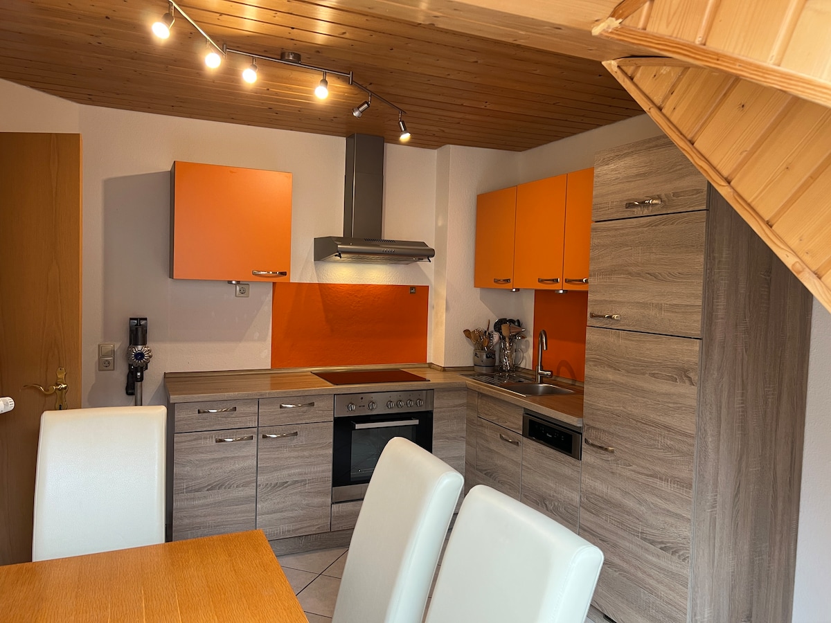 Apartmen ini terletak di loteng rumah Black Forest dengan taman ladang di kawasan desa yang indah dan meriah di antara pinggir hutan dan ladang. Apartmen cerah yang cerah telah diubahsuai sepenuhnya dan dilengkapi dengan perabot bergaya pada tahun 2020. Pemandangan Feldberg yang mengagumkan, di atas padang rumput dan kampung Eschbach. Hidangan istimewa teh untuk mengalu-alukan anda. Bilik yang boleh dikunci untuk basikal dan peralatan sukan. Hentian bas berdekatan, kemudahan membeli-belah untuk keperluan harian adalah 2 km jauhnya.