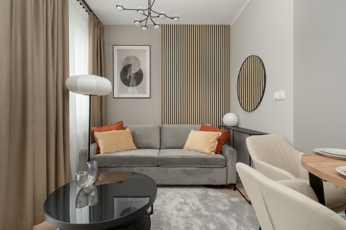 Penginapan ini terletak di kompleks ANGEL RIVER yang baru dibina (2018/2019) betul-betul di atas sungai Oława yang tenang. Dari tingkat atas, anda boleh menikmati pemandangan unik dari stadium ke kawasan pergunungan. Ruang tamu seluas 40 meter persegi + balkoni dan perabot moden berkualiti tinggi menjemput anda untuk berasa selesa. Apartmen ini sesuai untuk pengembara perniagaan serta percutian romantik untuk pasangan.