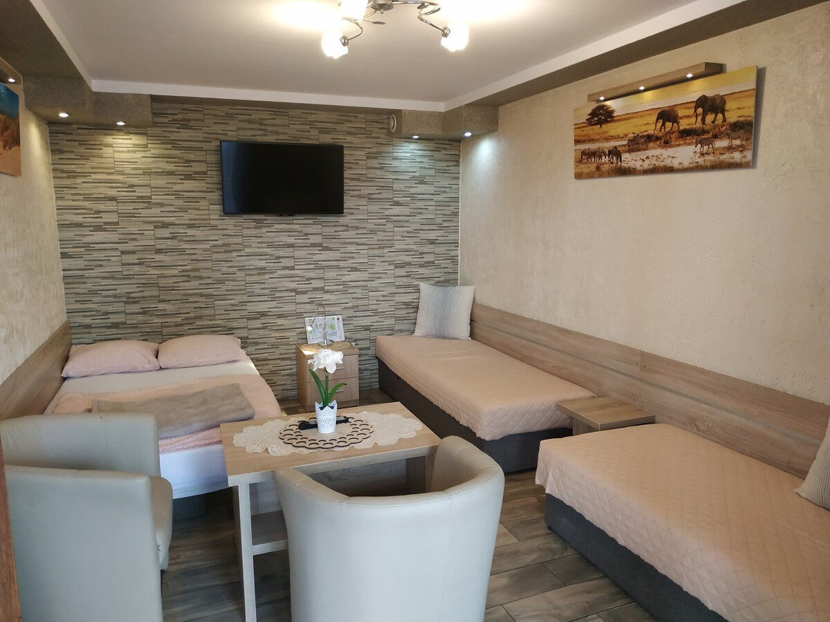 Tempat penginapan bergaya ini sesuai untuk pasangan atau kumpulan kecil yang terdiri daripada 4 orang (atau lebih atas permintaan) Terletak di kawasan kediaman yang tenang dengan tempat letak kereta persendirian di dalam dan ruang taman besar di hadapan penginapan. Dengan pintu masuk persendirian Apartmen ini dilengkapi dengan standard yang tinggi dengan semua peralatan dapur yang diperlukan. 3 minit memandu dari bandar Witkowo, 7 minit memandu ke Pangkalan Tentera Amerika di Powidz dan tasik paling bersih di Poland, 15 minit memandu ke Gniezno dan 8 minit memandu ke Skorzecin