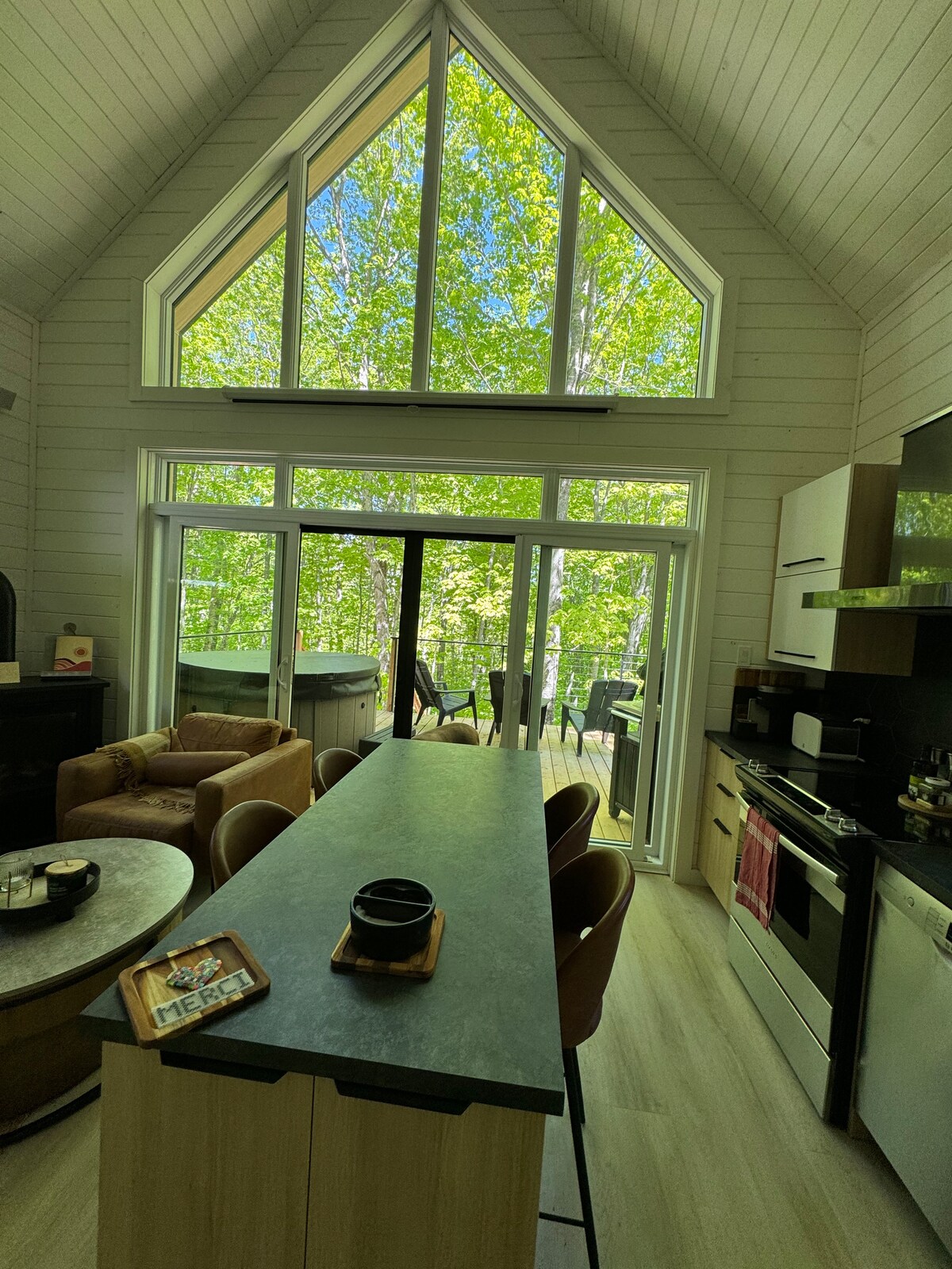 Caj semula di tengah-tengah alam semula jadi di penginapan yang tidak dapat dilupakan ini. Kotej Scandinavia moden kami untuk 4 orang dengan 1 katil raja dan 1 katil ratu. Selesa, bersih, dalam simbiosis dengan persekitarannya, sesuai untuk berehat sepenuhnya dan berhubung semula dengan alam semula jadi. Nikmati denai hutan maple dan saksikan hidupan liar di sekitarnya.