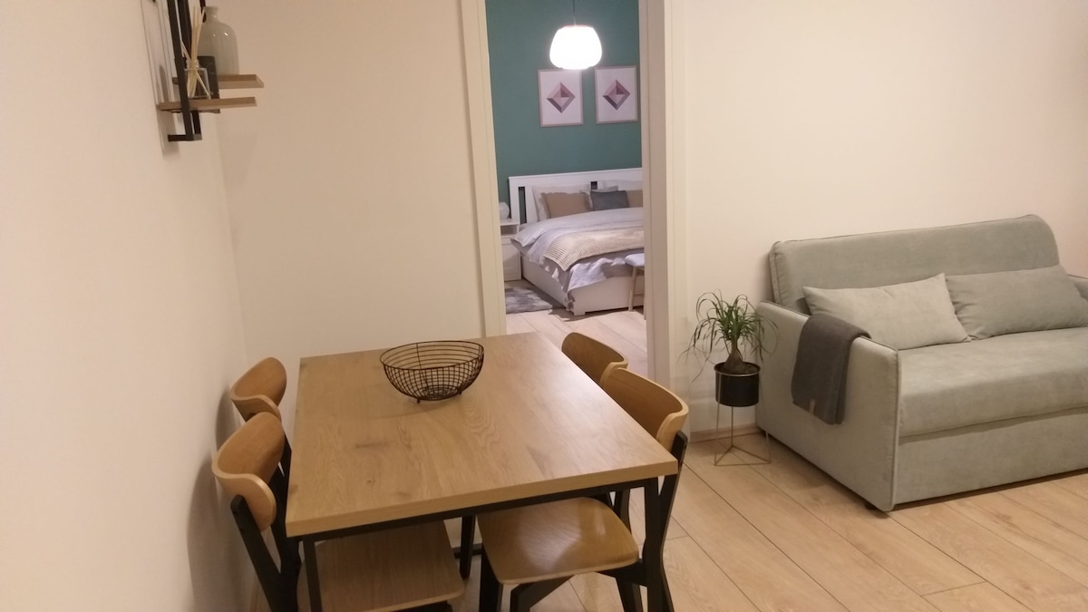 Apartmen elegan baharu di PUSAT BANDAR kurang daripada 10 minit berjalan kaki dari dataran utama dan stesen kereta api. Terletak di halaman belakang yang damai di jalan utama supaya anda boleh menikmati malam yang tenang. Terdapat satu bilik tidur dengan katil saiz queen, ruang tamu dengan TV + NETFLIX dan sofa tarik keluar (saiz queen), bilik mandi dengan tandas dan pancuran mandi berjalan kaki lapang berasingan. Semua perabot dan peralatan adalah baharu. Teh & kopi PERCUMA, tuala PERCUMA.
