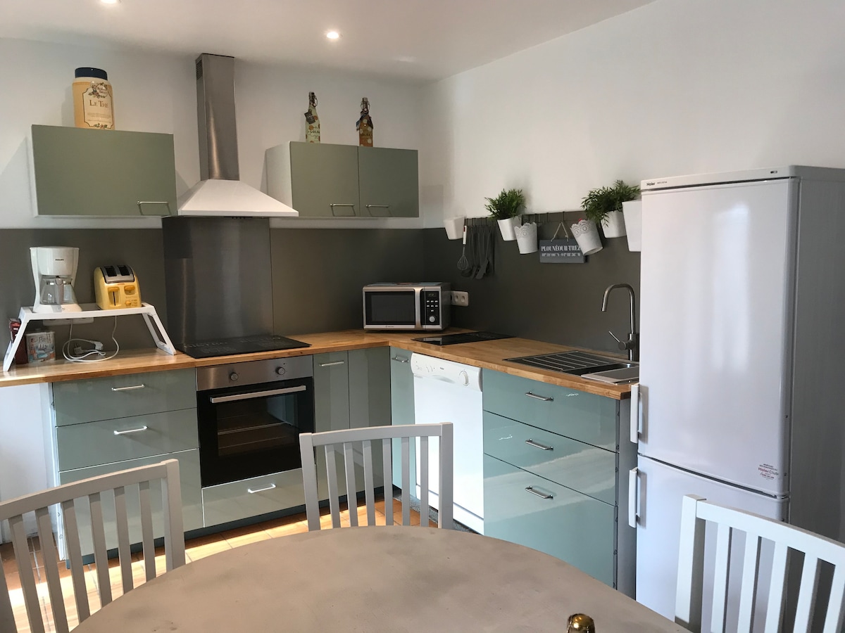 Permudahkan kehidupan anda di ruang tengah yang damai ini. Rumah yang diubahsuai dalam gaya Cycladic seperti kepompong yang cerah. Ruang tamu besar seluas 30 m2 dengan ruang tamu, dapur menghadap teres untuk makanan yang cerah. Dapur melengkapkan bilik ini untuk memanaskan beberapa hari hujan yang tidak pernah bertahan. Di tingkat atas, tangga kecil sepi 2 bilik tidur di tengah-tengah dan pancuran mandi bilik mandi. 1 katil bilik tidur utama 160x200 1 bilik kanak-kanak 2 katil 90x200. Ketenangan..