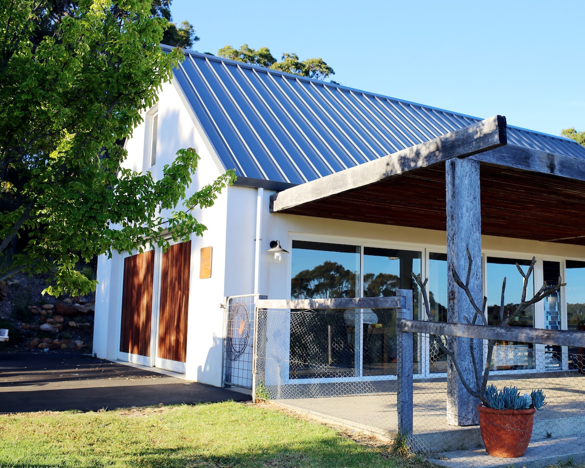 Tepat di tengah-tengah Margaret River, tempat perlindungan rumah dan taman yang sangat istimewa ini termasuk ruang santai luar termasuk ruang tamu yang menyamar dengan pemanasan luar untuk bulan-bulan musim sejuk. Rumah ini mempunyai koleksi seni eklektik daripada karya saya dalam komuniti Orang Asli terpencil dan daripada artis tempatan. Dari rumah, anda boleh berjalan kaki dengan mudah ke sungai, hutan dan galeri jalan utama, kedai dan kafe. Pengendali lawatan kilang wain boleh menjemput anda dari rumah.
