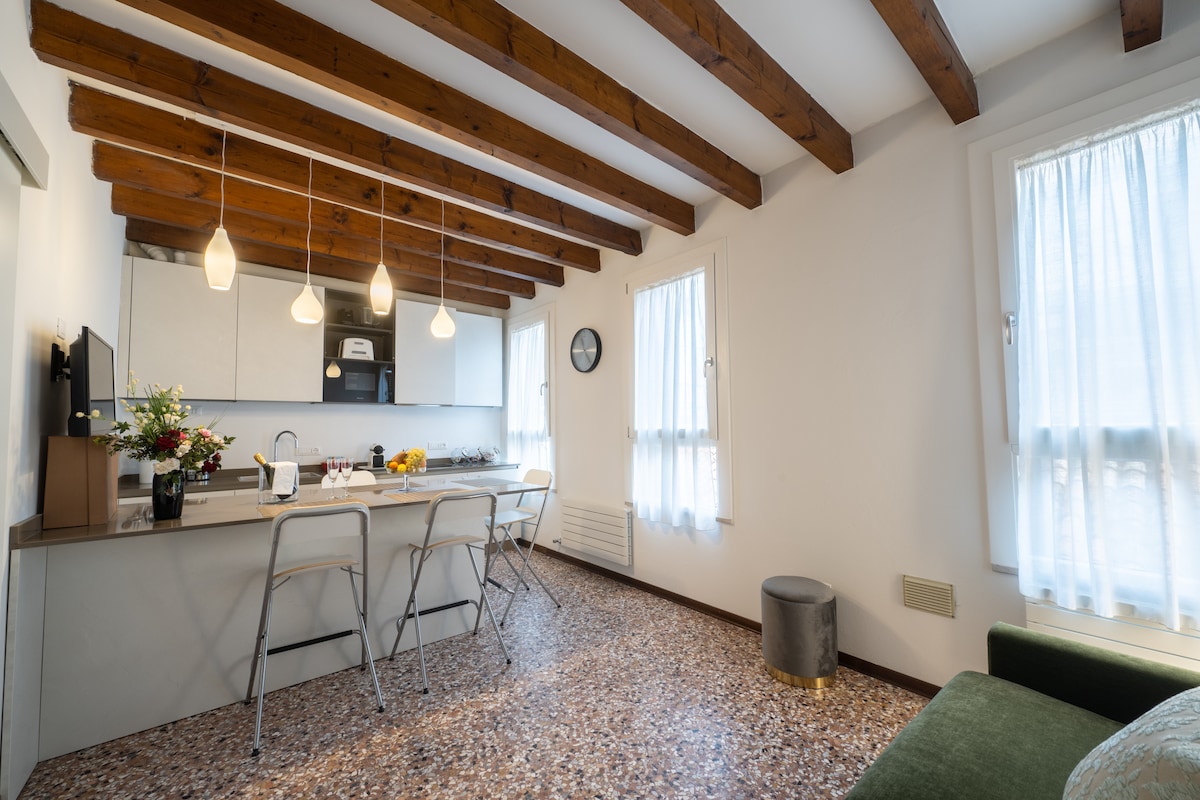 Rbnb Corona virus cleaning protocol here The Doge’s Hideaway is a bright, charming and tastefully furnished elegant apartment in the heart of Venice. The stylish apartment is 70 square meters and can comfortably accommodate up to 4 guests Il Nascondiglio del Doge è appartamento luminoso e bello nel cuore di Venezia. E stato arredato con gusto e eleganza. L'appartamento è di 70 metri quadrati e può ospitare comodamente 4 ospiti.