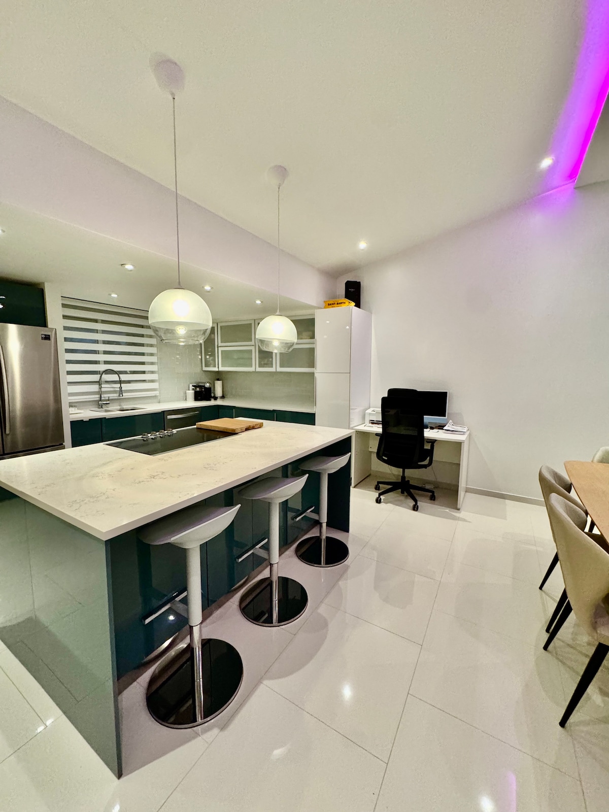 Ruang yang indah untuk berehat dan berehat selepas hari yang sibuk sama ada untuk bekerja atau bermain. Bangun pagi dengan segar dan bersedia untuk sehari meneroka Pulau melalui kondominium yang bersih dan cerah dengan pemandangan yang menakjubkan. Terletak di tingkat 4 Aquamarina Residence yang mewah, kondominium ini dilengkapi dengan semua yang anda perlukan untuk membuat anda berasa selesa seperti di rumah sendiri. Dengan lebih 1700 kaki persegi ruang tamu dan 700 kaki persegi balkoni luaran, anda boleh menikmati pemandangan St. Maarten/St. Martin, Saba dan Anguilla yang tinggi.