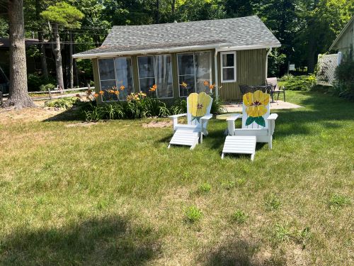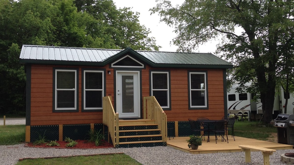 Comel dan selesa, tetapi luas. Gaya studio menuju ke ruang tamu dengan katil Queen dan dapur kayu berdiri bebas. Dapur dengan katil loteng bersaiz kelamin di atasnya (paling sesuai untuk kanak-kanak). Bilik mandi dengan pancuran mandi. Pintu kaca gelongsor dari dapur menuju ke patio dengan meja berkelah, pemanggang, dan lubang api persendirian. Kira-kira 350 kaki dari tasik dengan pantai berpasir, trampolin air, kayak dan bot kayuh. Mesra haiwan peliharaan! Perhatian: sewaan musim sejuk hanya tersedia pada pertengahan Oktober - April. Deposit keselamatan diperlukan