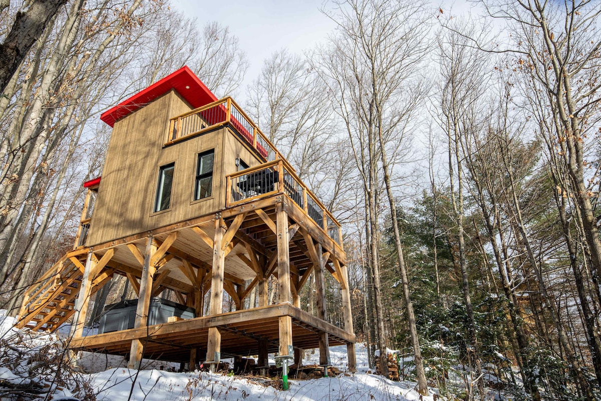 **BERHATI-HATI. Tidak sesuai untuk keluarga. Baca butiran dengan teliti sebelum membuat tempahan.** Kotej pelan terbuka kecil, dikelilingi oleh pokok, sesuai untuk mengecas semula bateri anda di kawasan desa atau memberi tumpuan kepada projek seni, menulis, dan bekerja dari jauh. Hanya beberapa minit dari Vallée du Parc, Parc Nationale de la Mauricie, Kelab Golf Le Laurentide, Le Duché de Bicolline. Berdekatan dengan Saint-Tite, pusat bandar Shawinigan dan Trou du Diable yang terkenal. Nombor penginapan CITQ: 302795