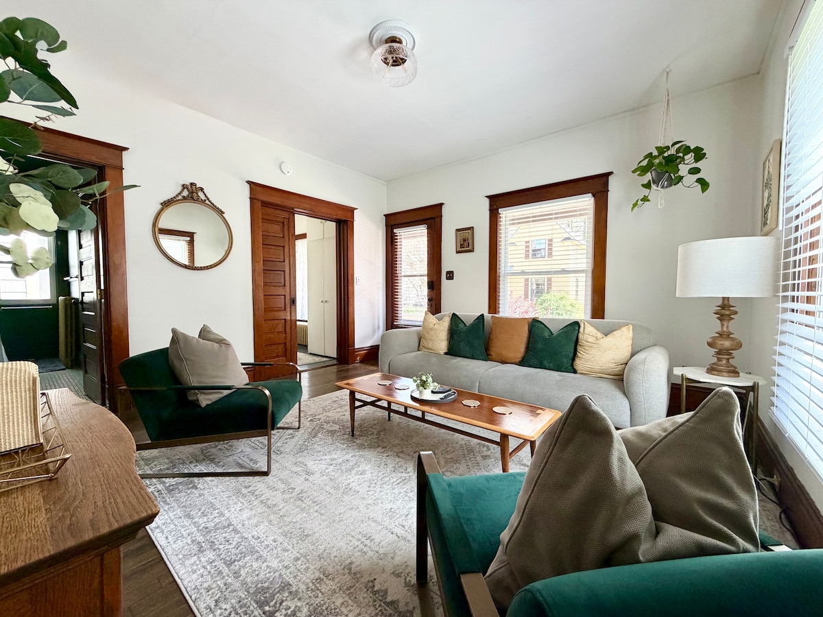 Apartmen 1 adalah unit bawah rumah dua unit yang menawan, menawarkan penginapan yang selesa dengan watak bersejarah. Nikmati lantai kayu keras asal, kayu yang cantik, & kabinet terbina dalam di ruang makan & dapur. Meja makan besar sesuai untuk makan atau bekerja. Bersantai dengan haba yang memancar, tirai gelap, ruang gantung almari yang luas, & cadar 680-thread-count. Bilik tidur 1 mempunyai pintu poket asal. Setiap unit mempunyai pintu masuk persendiriannya sendiri; harap maklum bahawa unit atas mungkin diduduki semasa penginapan anda.