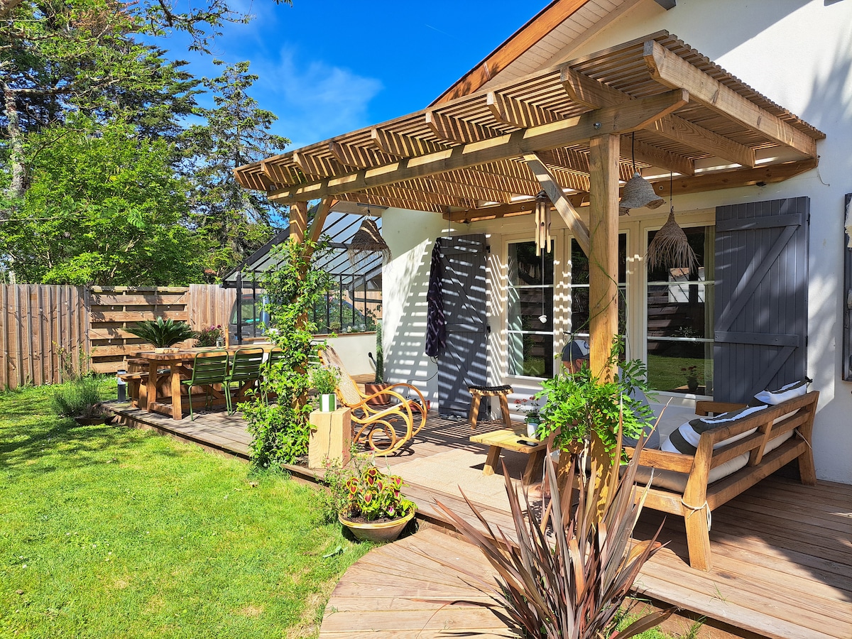 La Cabane Océane, vila arkitek dengan hiasan kemas mengalu-alukan anda dengan selesa dengan 4 bilik tidur, 2 bilik mandi, dapur lengkap dan pantri. Vila ini cerah dengan ruang tamunya yang luas membuka ke alam semula jadi yang menyenangkan dan taman yang tenang dengan kolam renang yang dipanaskan (8x4). Laluan basikal di hadapan rumah membawa anda ke pantai. Pembersihan rata perlu dibayar di tapak € 220. Yakinlah bahawa kami akan berusaha sedaya upaya untuk memastikan anda mendapat penginapan yang menyeronokkan.