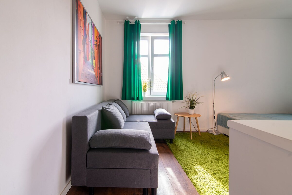 Flat berkilau hijau di tengah-tengah bandar lama Poznań
