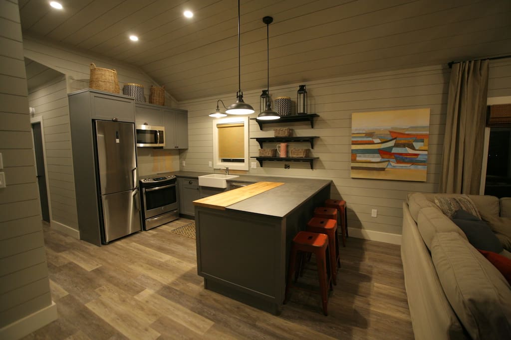 Kami kini mempunyai kotej tepi air yang diubahsuai sepenuhnya yang tersedia untuk percutian hujung minggu atau percutian yang dilanjutkan. Konsep terbuka lengkap dengan katil Queen dan dua katil kembar, dapur, bilik mandi, dek dan tab mandi air panas persendirian. Terletak di penghujung Queens Point di Tracadie Bay, tetamu boleh menikmati semua yang ditawarkan oleh Pulau ini dari lokasi pusat kami, atau pergi dari semuanya dan menikmati malam-malam yang dipenuhi bintang Off Season dari keselesaan tab mandi air panas.