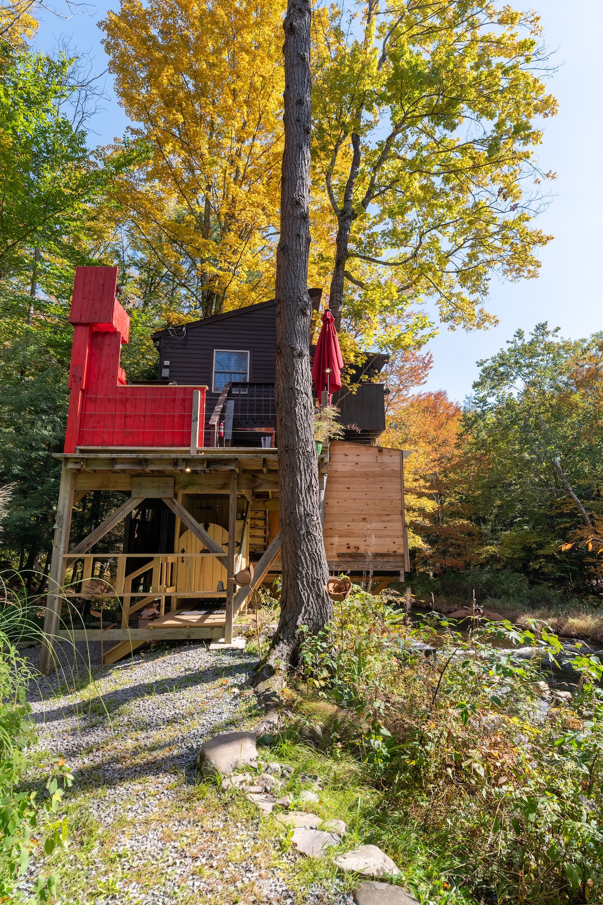 Tempat yang sesuai untuk bangun di atas pokok atau menghabiskan hujung minggu dengan rakan-rakan! Bersantai dalam ketenangan dan keindahan pemandangan dari anjung anda sendiri! Dikelilingi oleh tanah negeri hanya beberapa minit dari banyak laluan mendaki dan air terjun di taman negeri tanah yang dijanjikan. Nikmati berendam di salah satu tasik berhampiran atau bakar api pada malam yang sejuk di dalam di tepi dapur kayu.