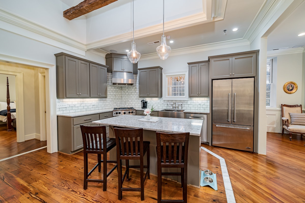 Loteng 2 katil/2 bilik mandi yang cerah dengan tingkap tinggi, 1 katil king & 1 katil queen, 2 katil kecil & tempat duduk kulit dan TV pintar 56". Tanpa anak tangga, akses lif dan 1500 kaki persegi pada satu tingkat! Kesempurnaan lokasi: Satu blok ke Main St yang meriah dengan restoran hebat, 1 blok ke Peace Center, 5 minit berjalan kaki ke Falls Park & Swamp Rabbit Trail. Tempat letak kereta garaj kos rendah memastikan ketibaan bebas tekanan. * Wi-Fi Pantas * Dapur yang dilengkapi dengan baik *Ketersediaan hos 24/7 *Unit ke-2 merentasi koridor - Tanya saya! Tempah sekarang!