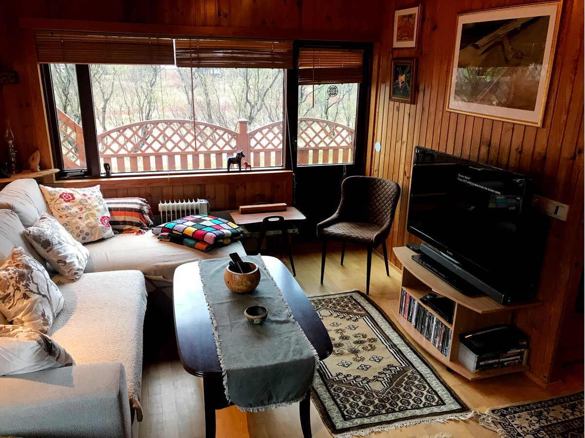Rumah percutian ini sangat selesa dan mempunyai pemanas lantai. Ada sehingga 7 orang boleh menginap semalaman. Dapur dilengkapi dengan peralatan putih moden dan semua perkara yang diperlukan untuk memasak. Di luar bilik duduk terdapat patio di mana pemandangannya menakjubkan dan pada musim sejuk terdapat peluang yang baik untuk menyaksikan cahaya utara yang menakjubkan! Terdapat akses WiFi percuma di rumah percutian. Menunggang kuda disediakan dengan perkhidmatan peribadi.