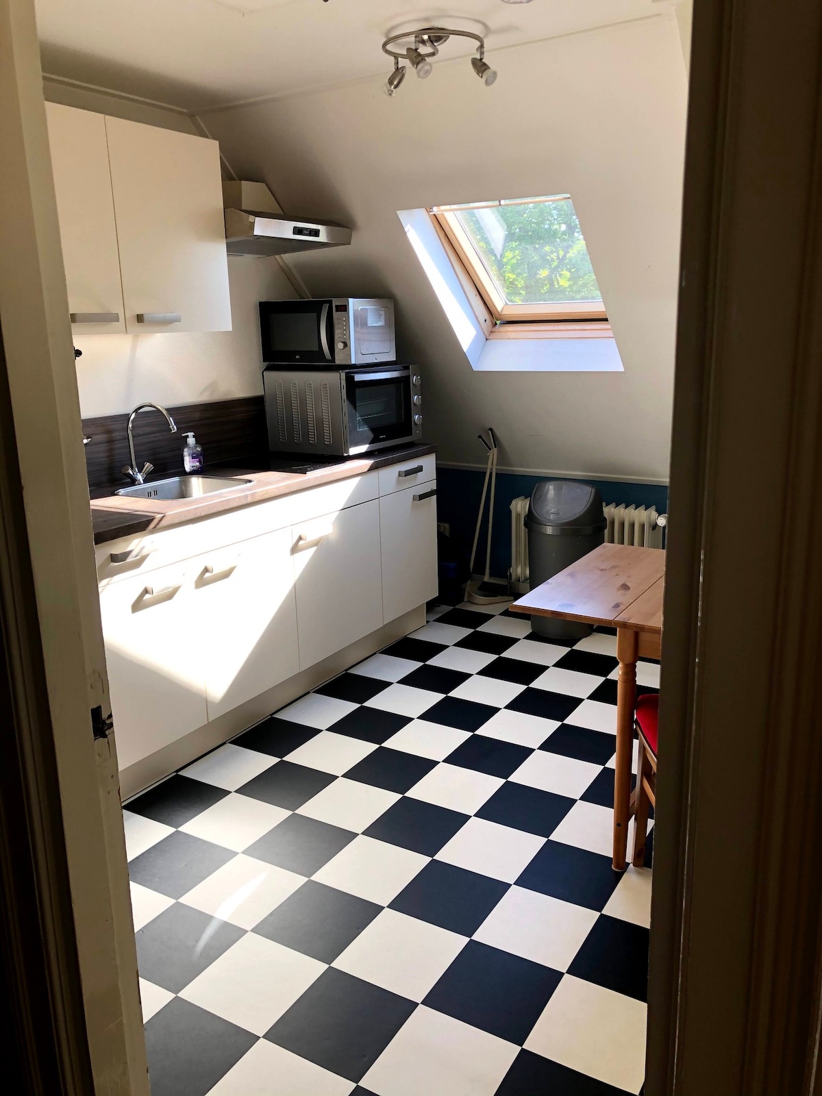 Nikmati pengalaman yang cantik dan selesa di tempat yang terletak di tengah-tengah ini. Apartmen berperabot voor satu/dua orang di kejiranan popular. Apartment berada di tingkat tiga rumah tuan-tuan lama. Anda berkongsi koridor dengan kehadiran yang lain. Bilik mandi berjubin dengan marmer dan terdapat sauna peribadi. Anda mempunyai 2 teres bumbung yang tersedia dengan matahari sepanjang hari. Ruang tamu dengan dapur terbuka dan sofa sudut. Anda perlu membayar sendiri untuk tempat letak kereta