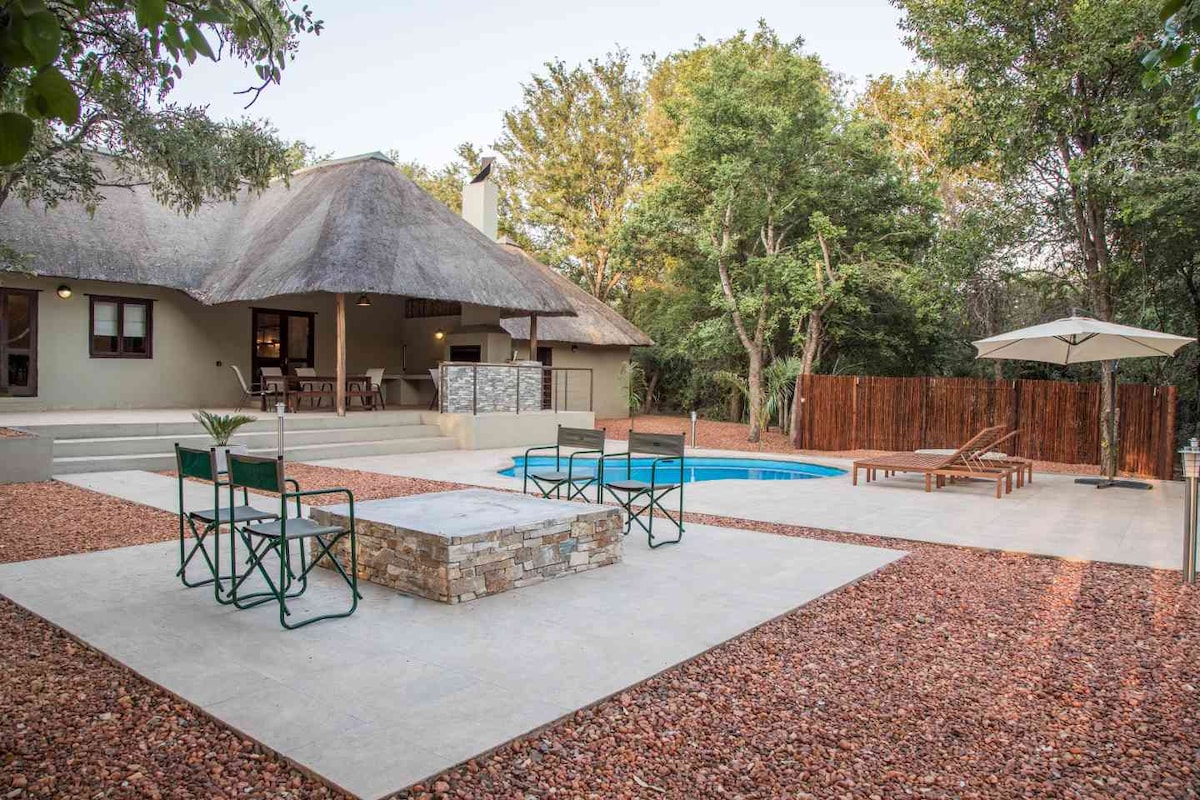Nikmati keindahan sebenar Afrika di Mfubu Lodge yang tersembunyi di tebing Sungai Olifants di bawah kanopi pokok gergasi di kawasan Greater Kruger Park, berhampiran dengan Phalaborwa, wilayah Limpopo. Laluan pejalan kaki udara menghubungkan tiga chalet, dua bilik mandi, ruang rehat dan ruang makan dengan barbeku dalam pemandangan sungai sepenuhnya. Dapur serba lengkap, kolam renang yang anda boleh gunakan. Lihat gajah atau kuda nil mandi di sungai, beberapa langkah dari anda. Terpesona dengan alam semula jadi Afrika di salah satu rizab semula jadi yang paling baik.