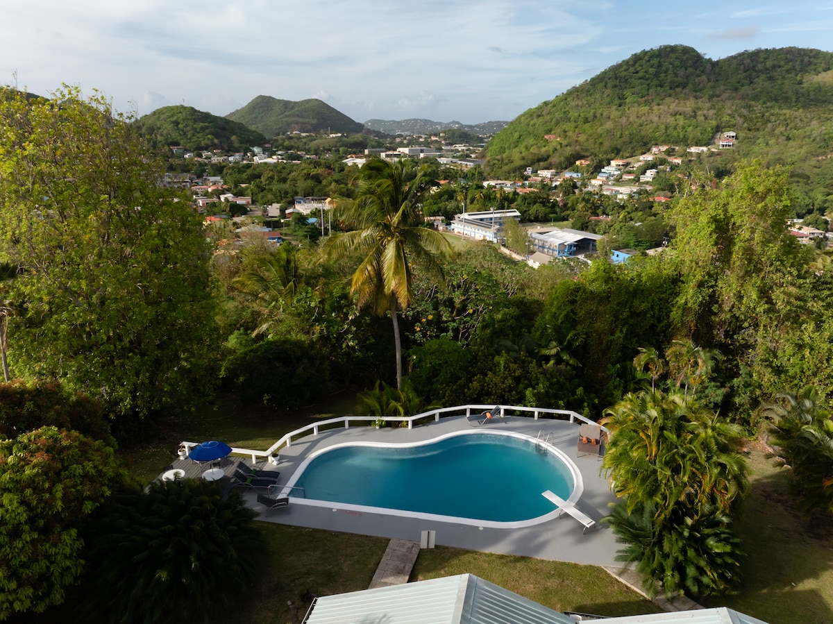 SUPER DELIGHTED AKAN MENAWARKAN AC DI SETIAP BILIK TIDUR MULAI 1 FEBRUARI 2025. Selamat datang ke Zandoli rumah pulau kami - berhampiran dengan segala-galanya namun merupakan percutian peribadi yang indah yang terletak di taman tropika. Dek mempunyai pemandangan yang menakjubkan yang sesuai untuk bersantai atau menghirup cawan kopi pertama; kolam renang kami jernih, pantai tidak jauh. Parti jalanan malam Jumaat terkenal Gros Islet, Rodney Bay Village/ Marina, kedai, restoran, hiburan terletak 5 minit dengan kereta. Jejak, memancing, spa, belayar, golf hanya beberapa minit sahaja.